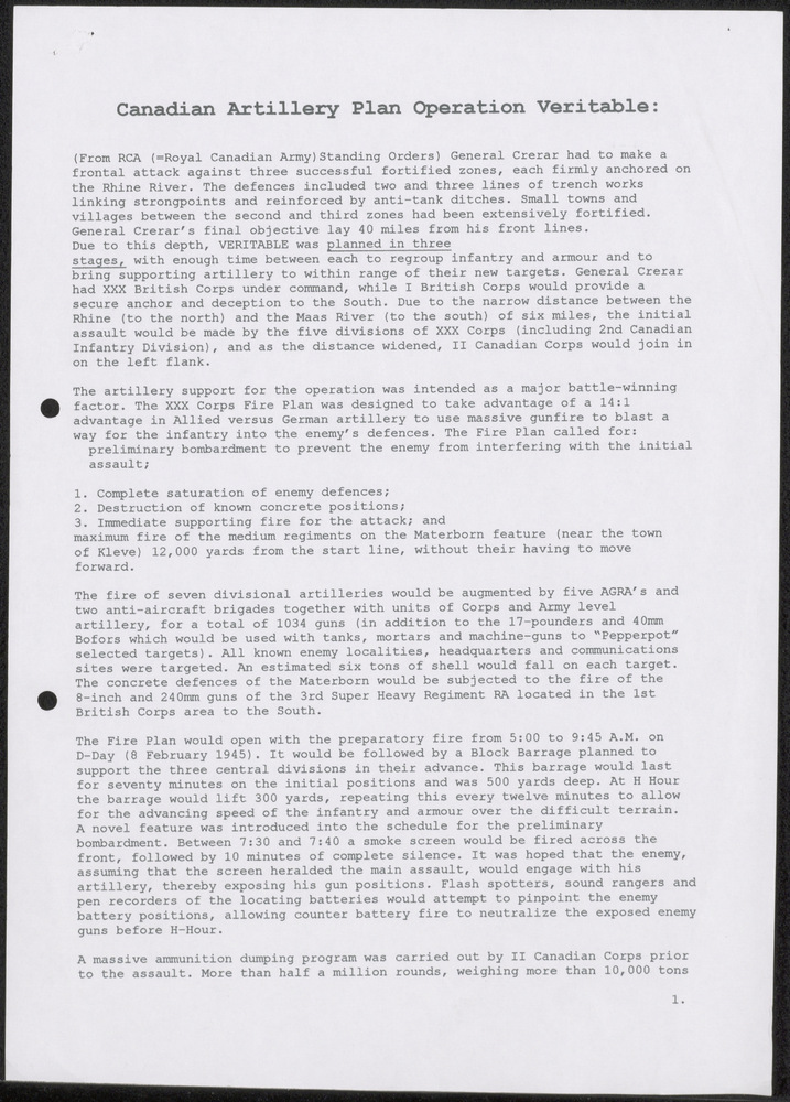 Canadian Artillery Plan Operation Veritable.