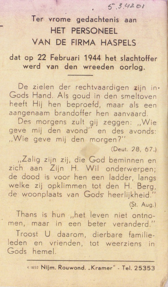 bidprentje zonder namen van de 19 slachtoffers van d...