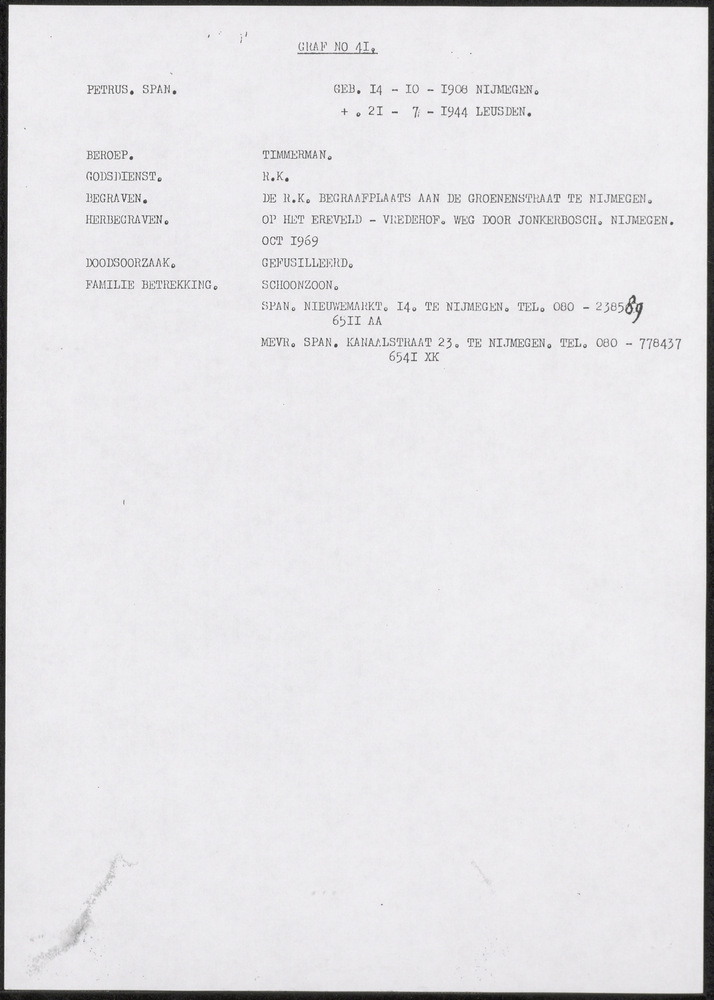Namenlijst Eereveld Vredehof Nijmegen.