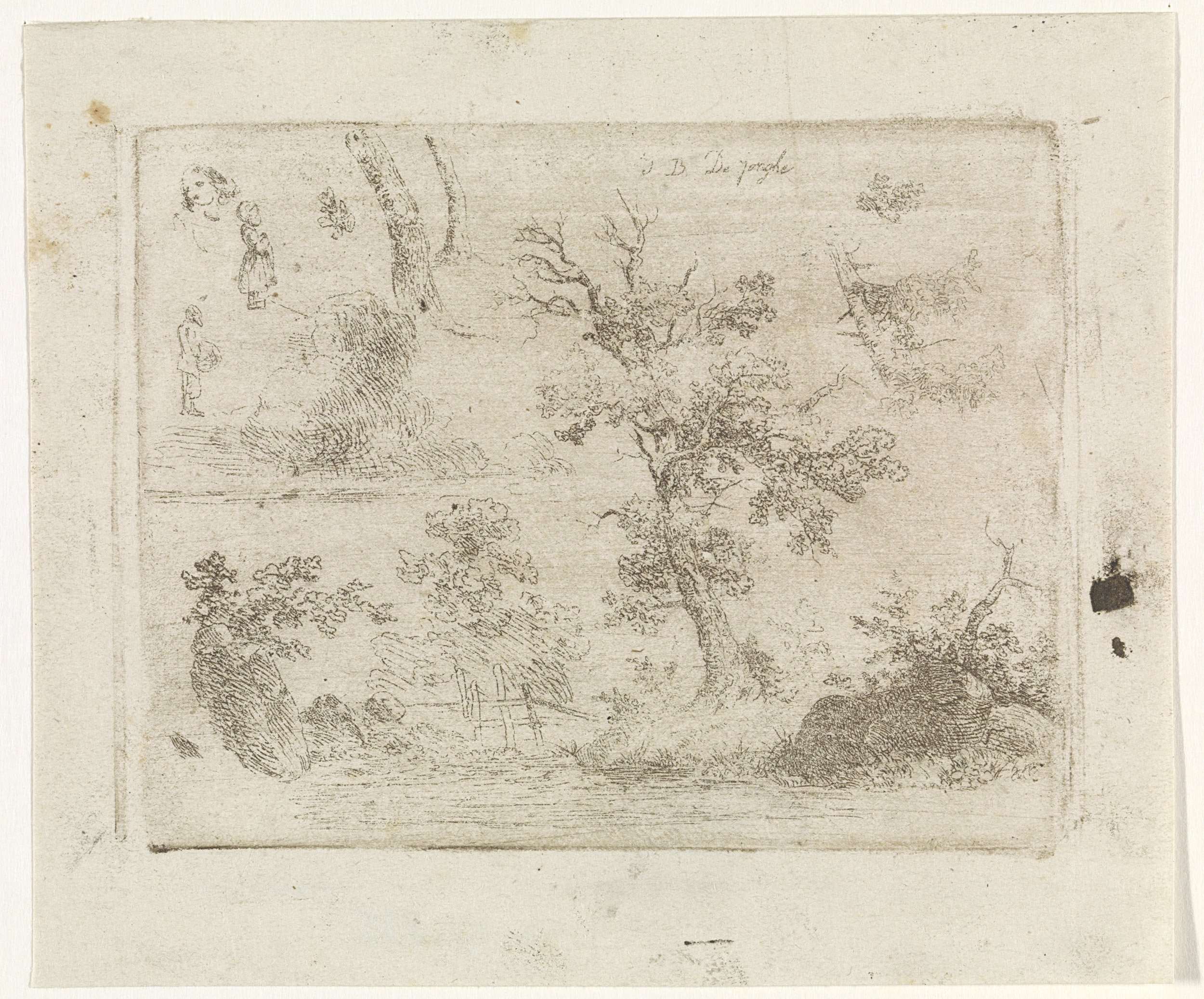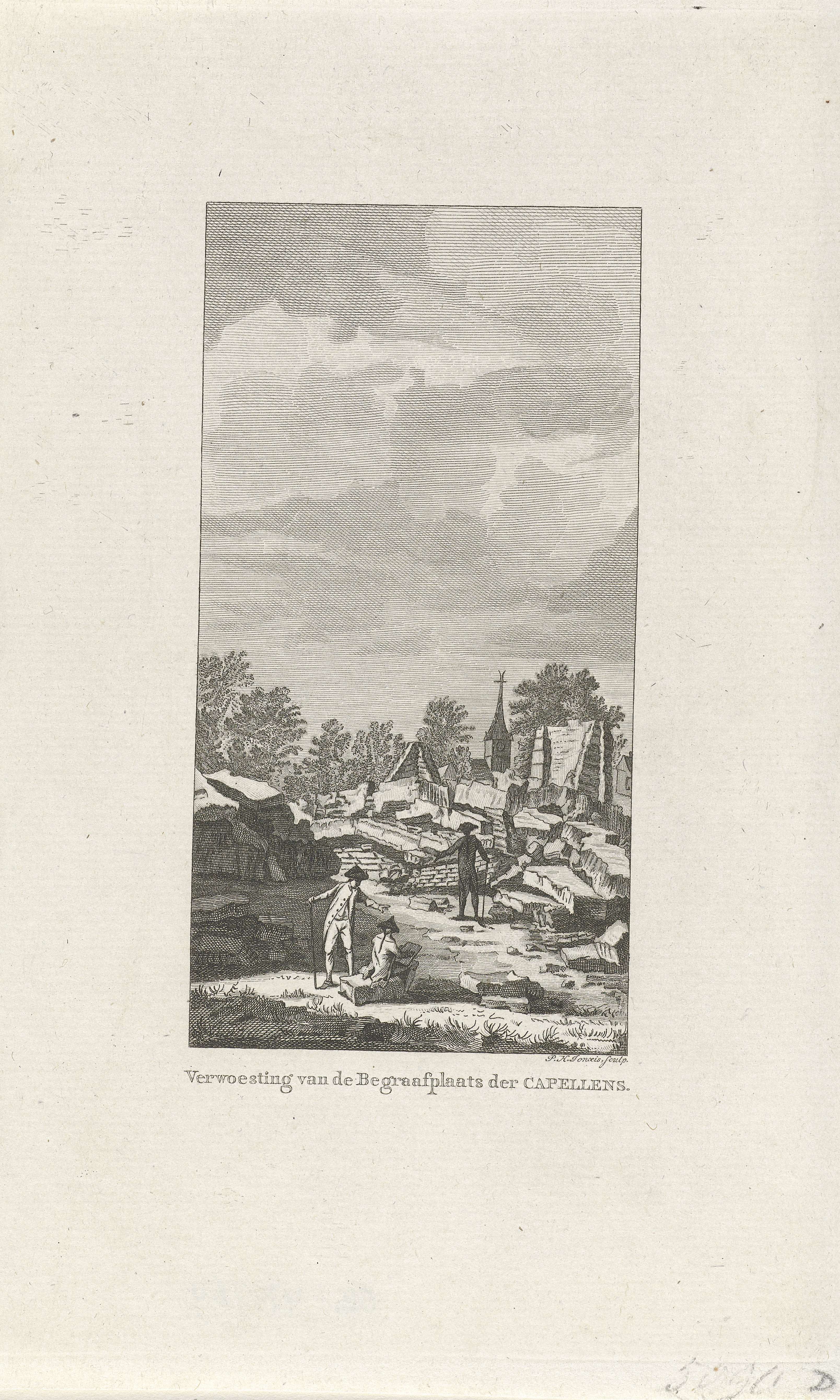 Landschap met verwoeste begraafplaats van familie Va...