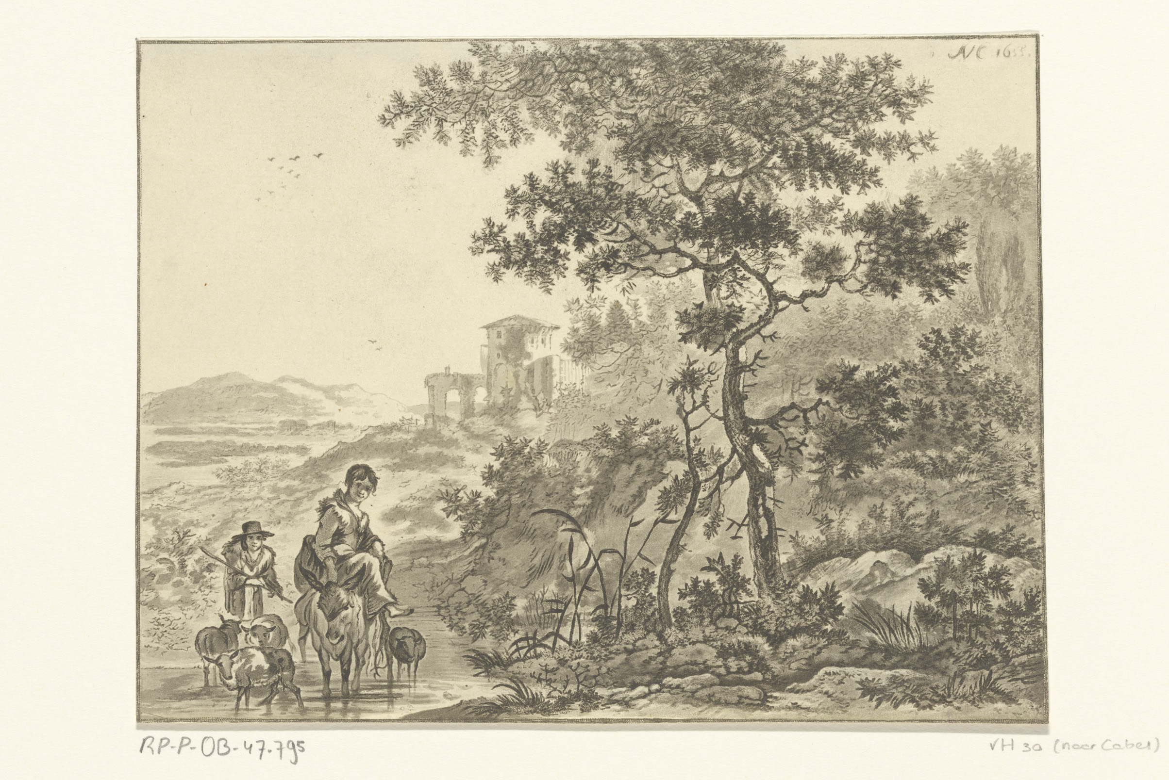Landschap met herders en vee
