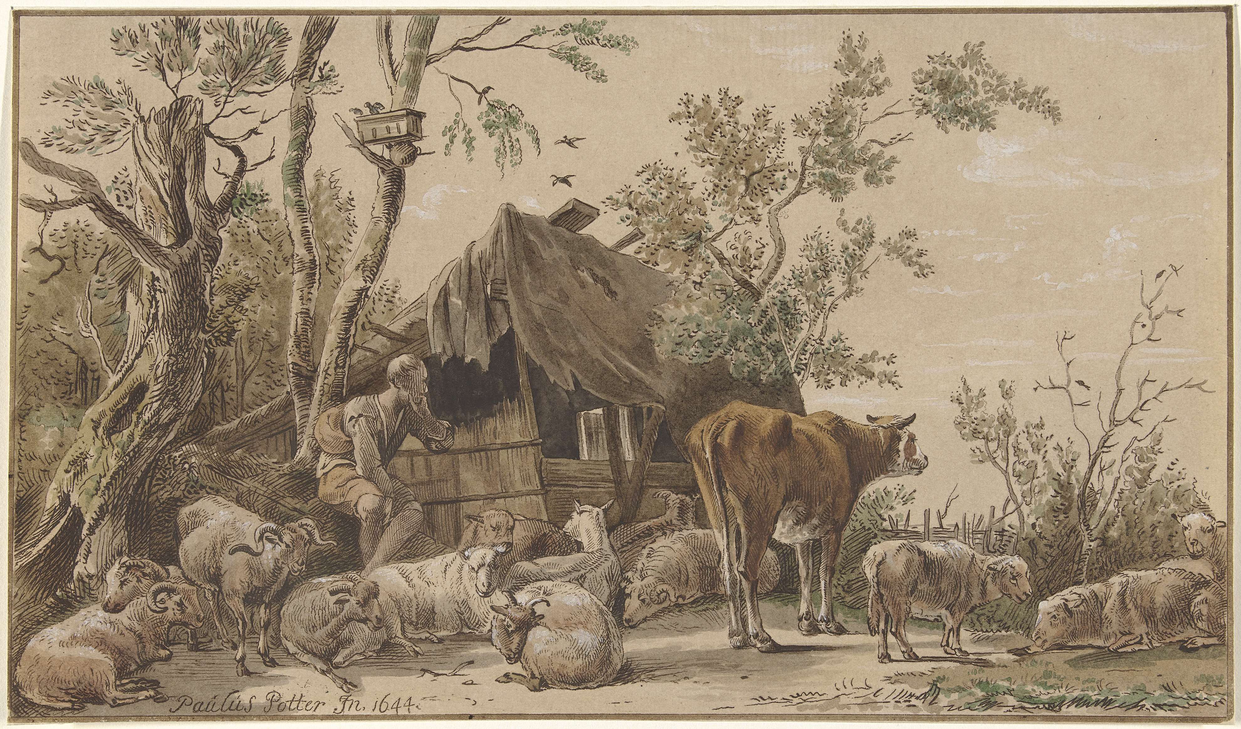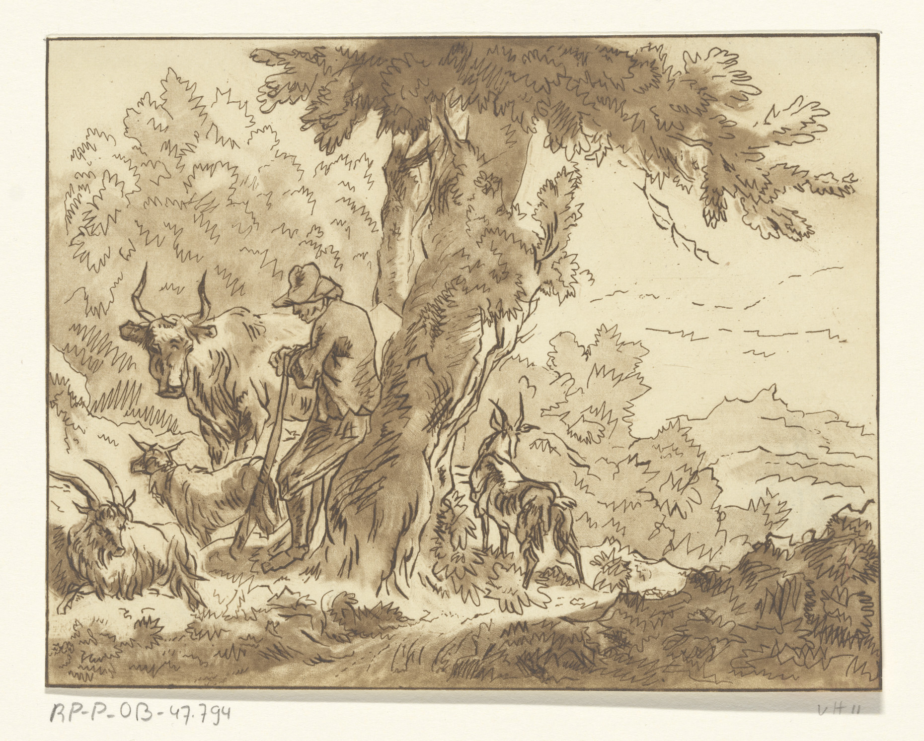 Italianiserend landschap met herder