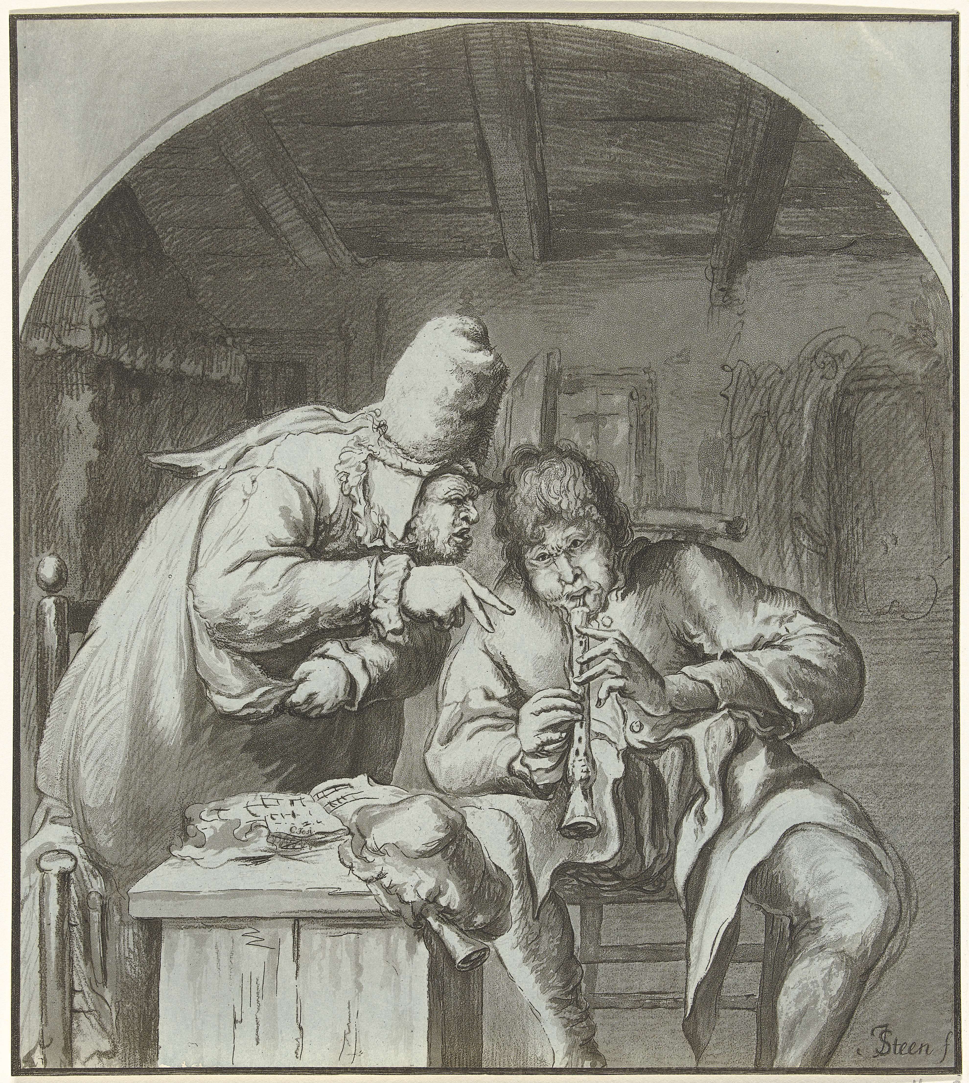 Interieur met boerenfamilie