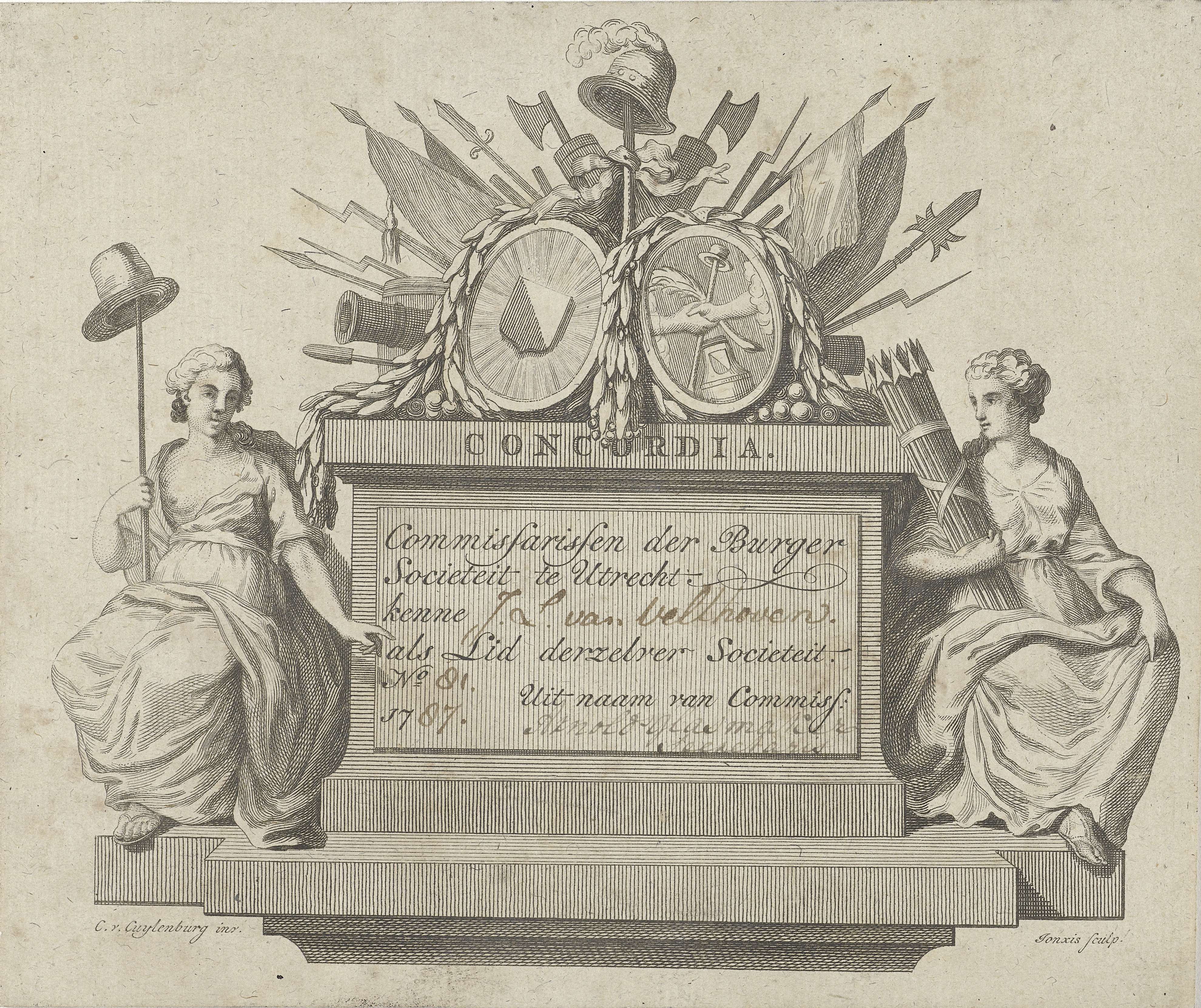 Bewijs van lidmaatschap van burgersociëteit Concordia