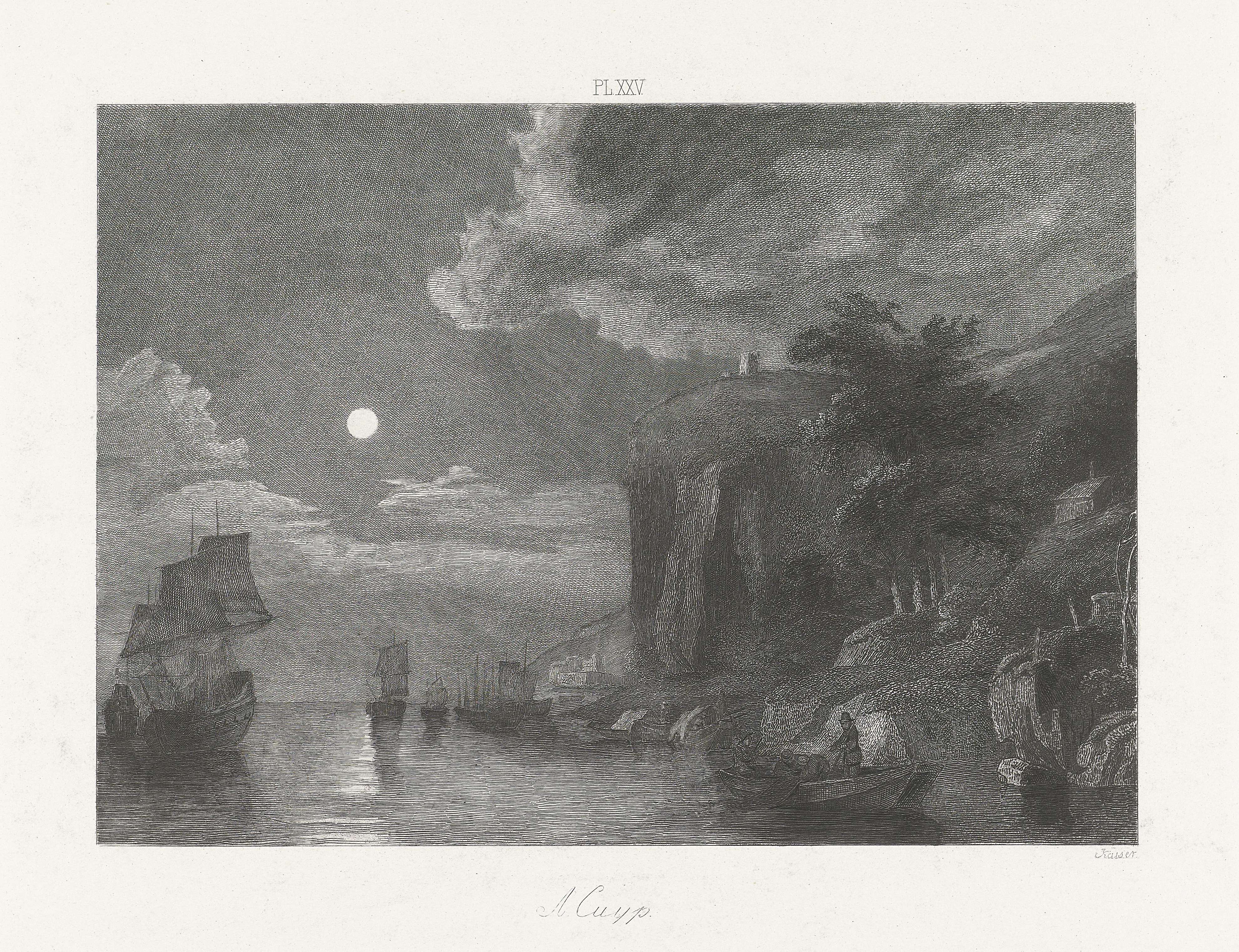 Kustlandschap bij volle maan