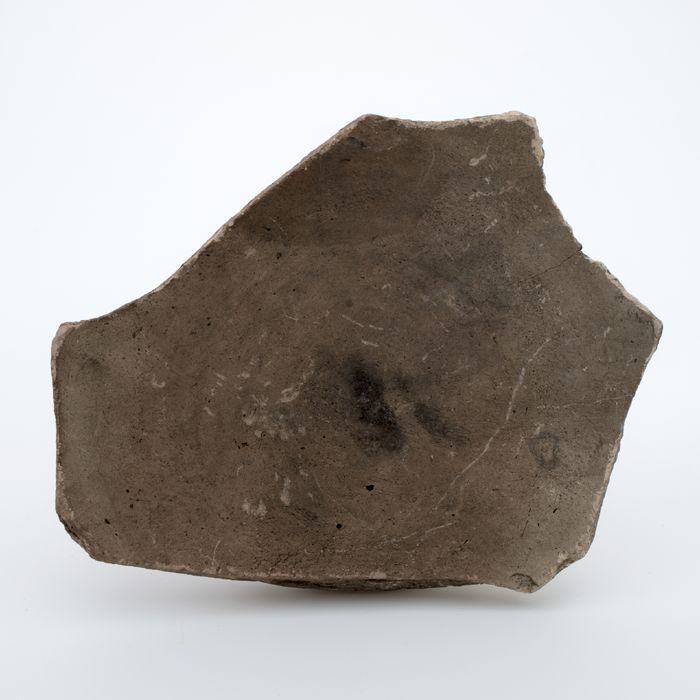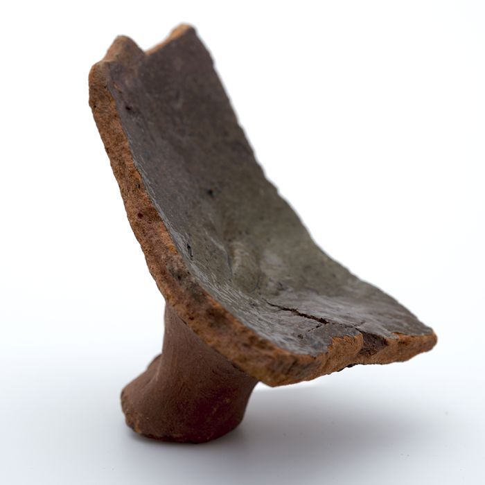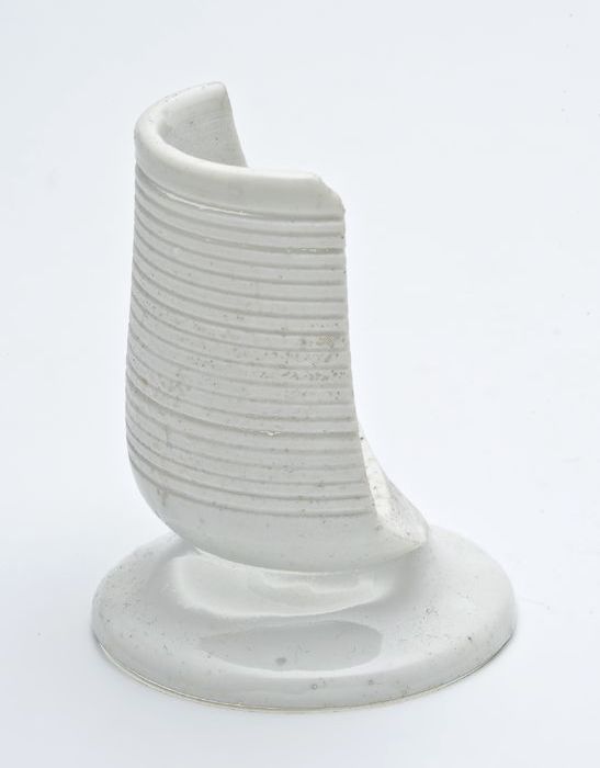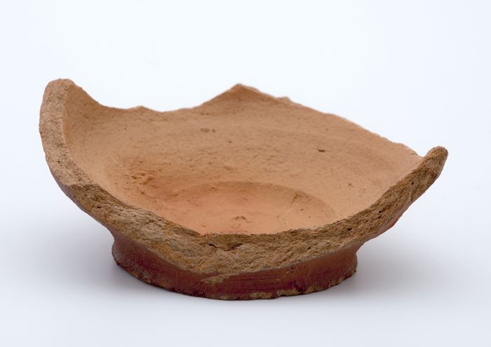 Fragment aardewerk schotel op standring, biscuit, zo...