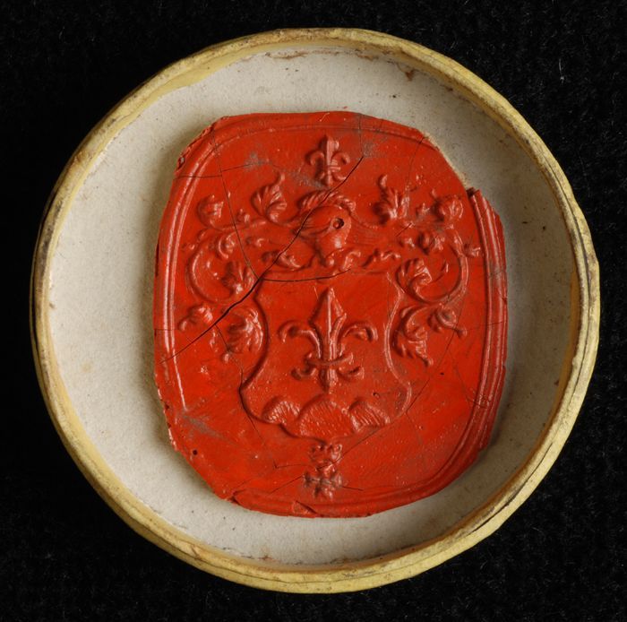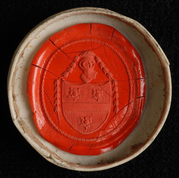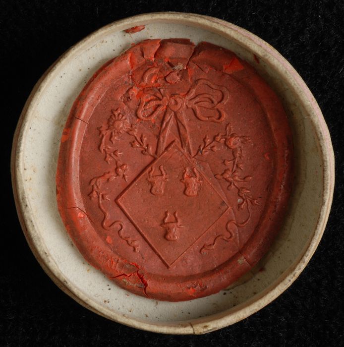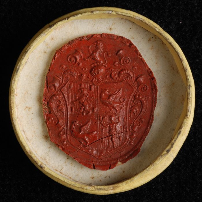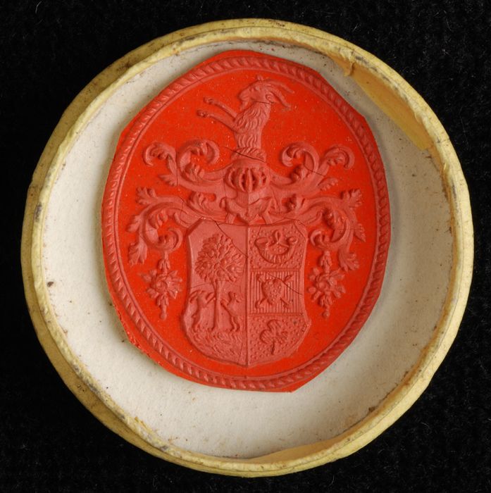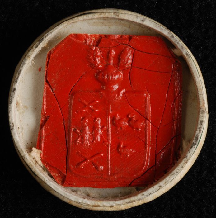 Lakzegel met familiewapen, alliantiewapen van onbeke...