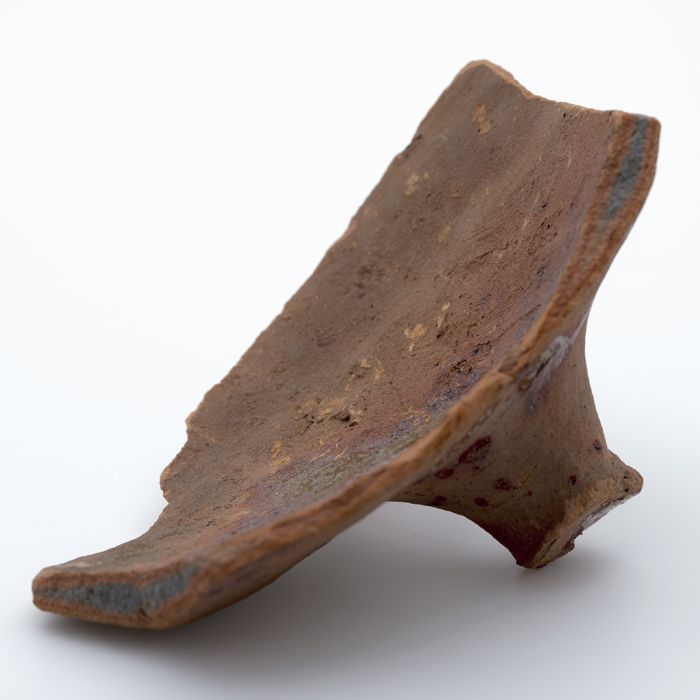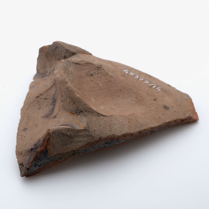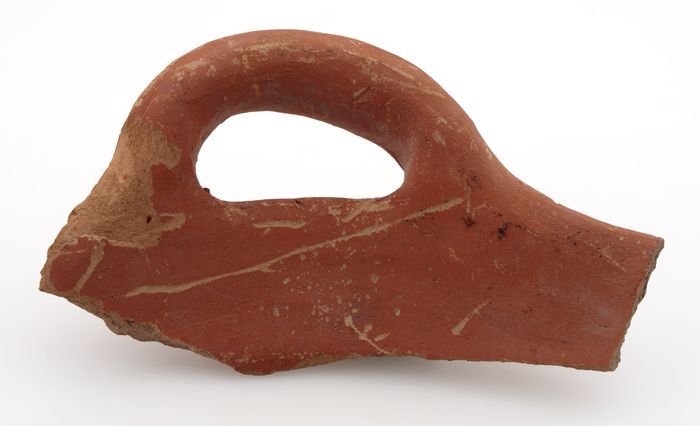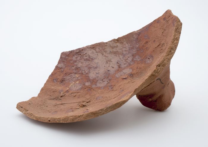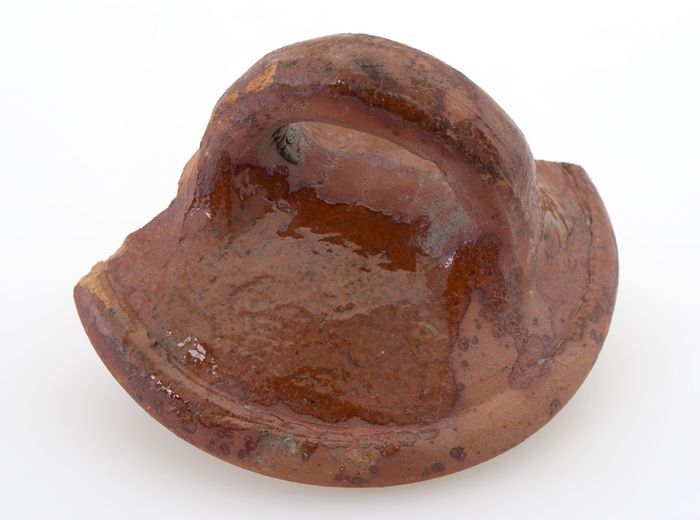 Deksel van rood aardewerk, liggend worstoor, spaarza...