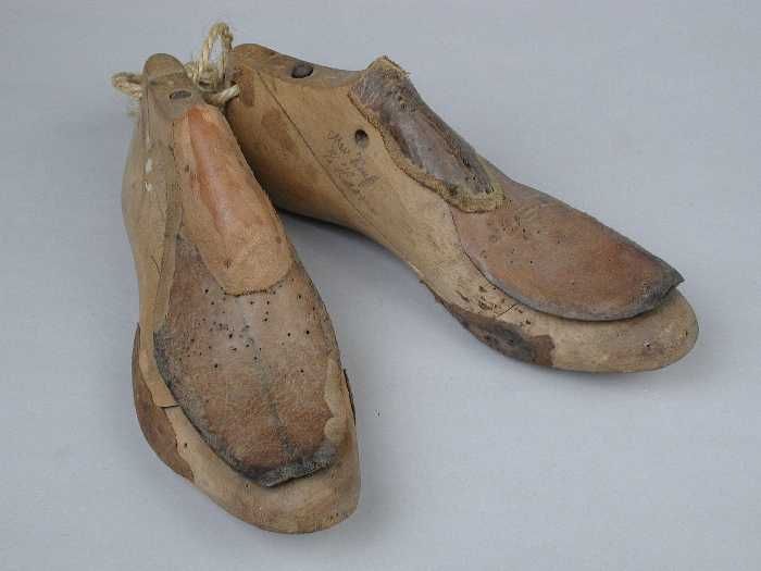 Paar leesten van hout voor damesschoenen, met leerbe...
