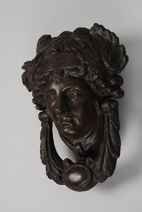 Gedecoreerde ijzeren deurklopper, in de vorm van vro...