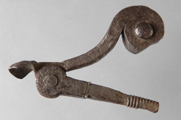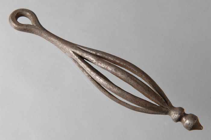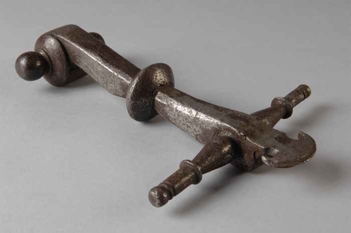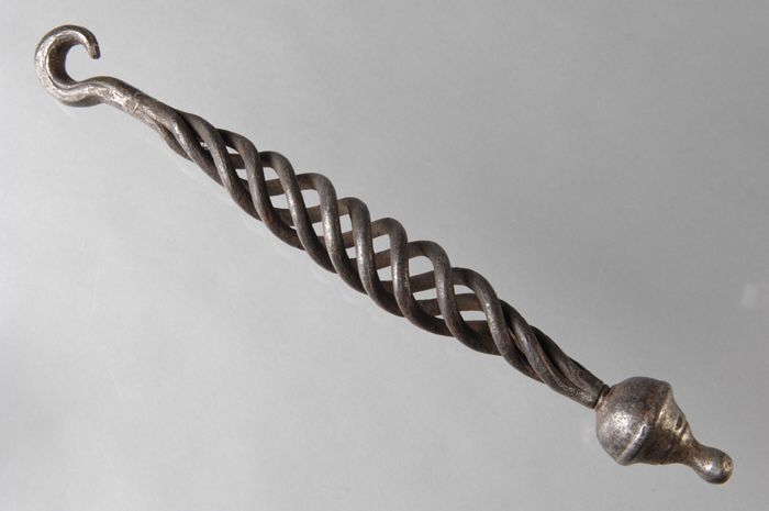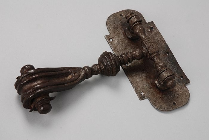 Gesmeed ijzeren beltrekker, druppelvormig met haak e...