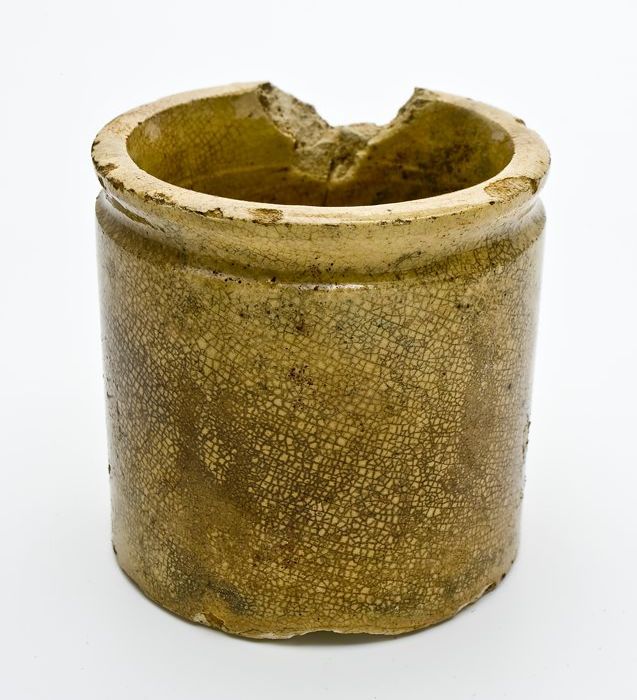 Cilindrische aardewerk zalfpot, gelig van kleur