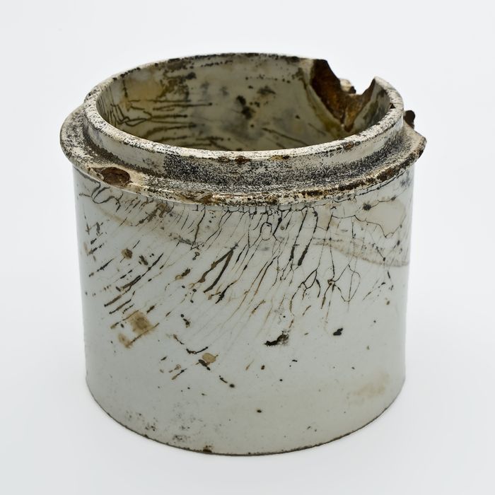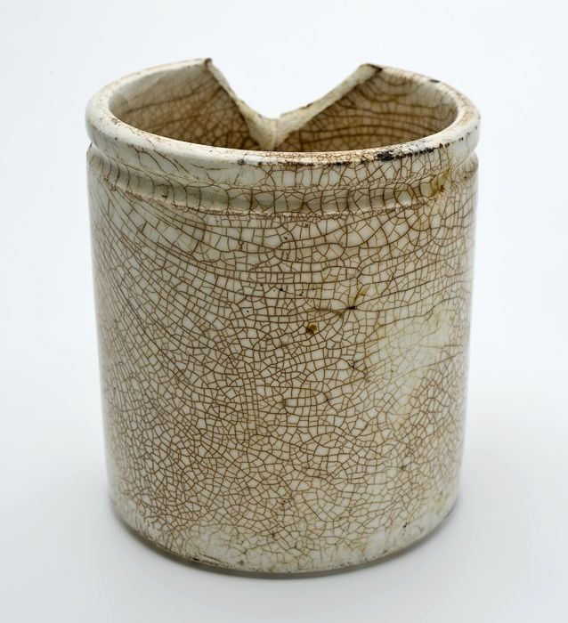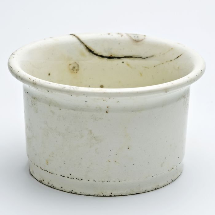 Cilindrische porseleinen zalfpot met bindgleuf