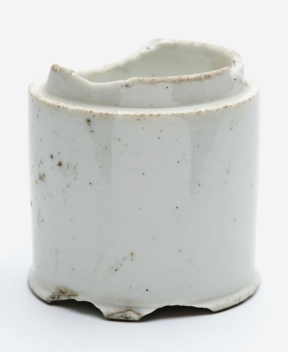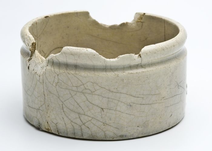 Cilindrische porseleinen zalfpot met bindgleuf, laag...
