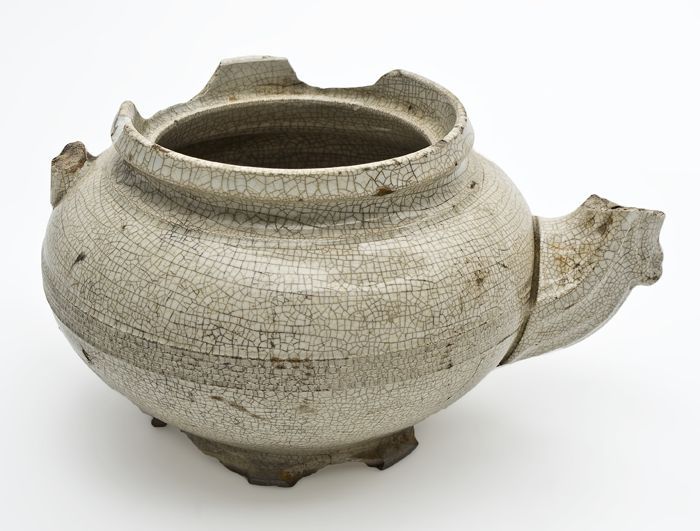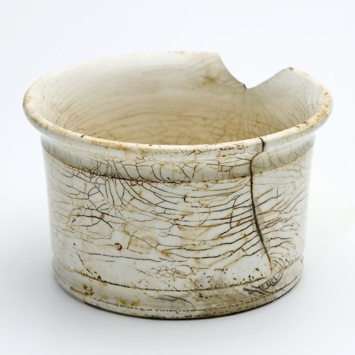 Porseleinen zalfpot met uitstulpende bovenrand, laag...
