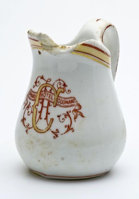 Porseleinen roomkan met opdruk: "GRAND HOTEL COOMANS...
