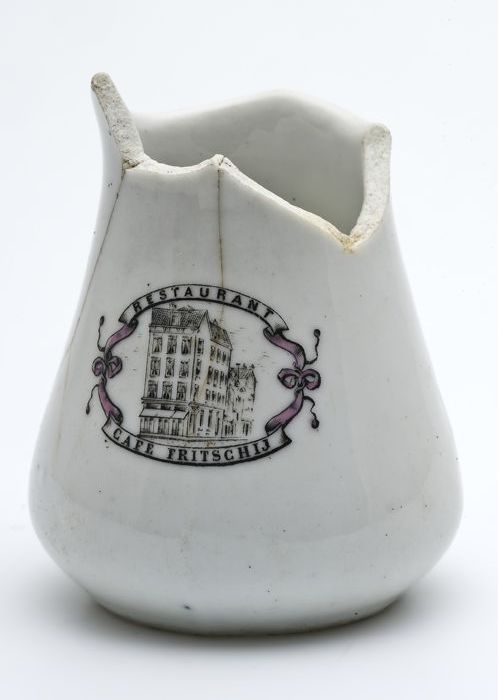 Porseleinen roomkan met opdruk: "RESTAURANT / CAFE F...