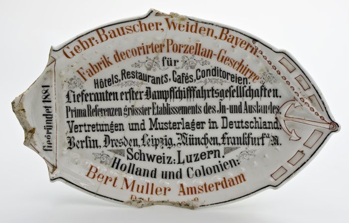Porseleinen bak in de vorm van een schip met opdruk ...