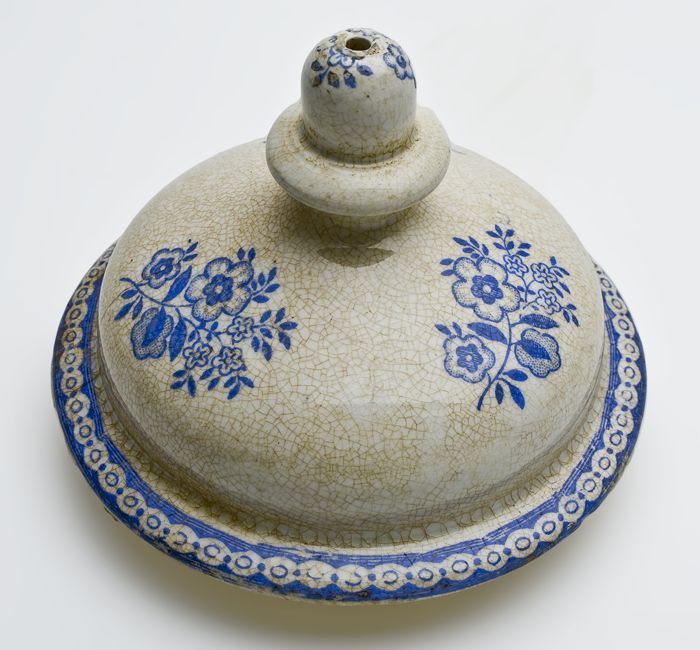 Porseleinen deksel met knop, blauw bloemdecor