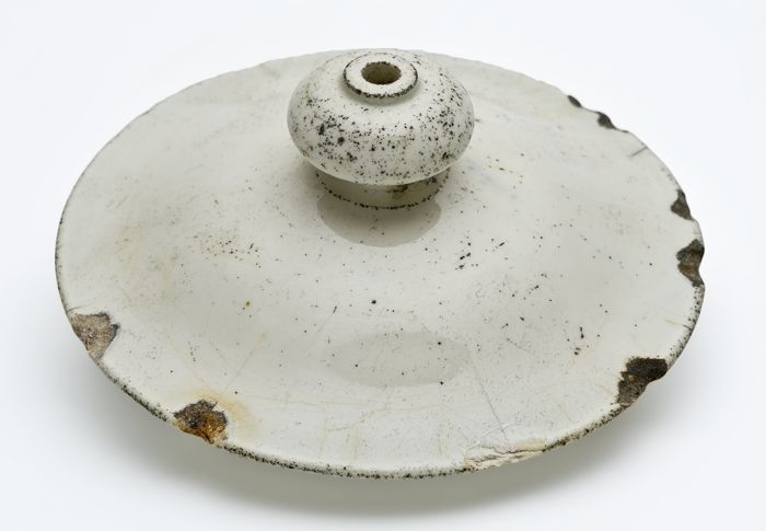 Porseleinen deksel met knop, wit