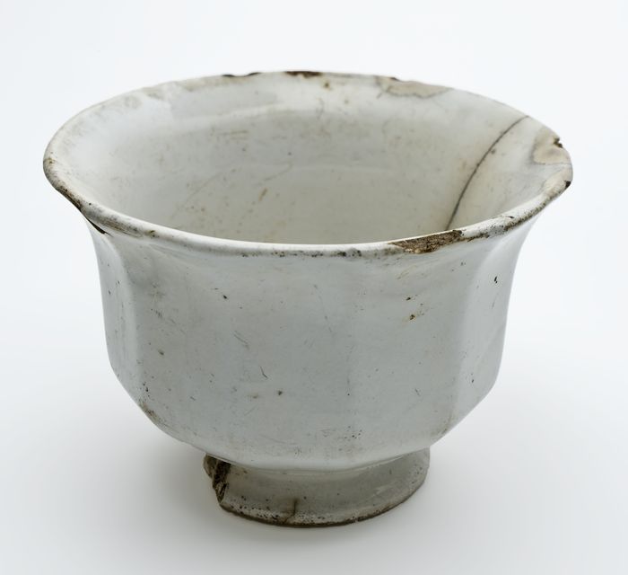 Porseleinen kop, wit, kelkvormig en op standvoet