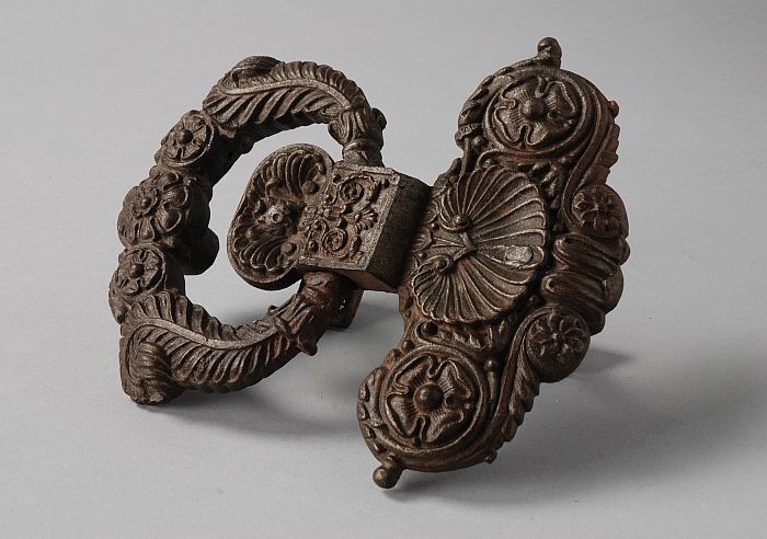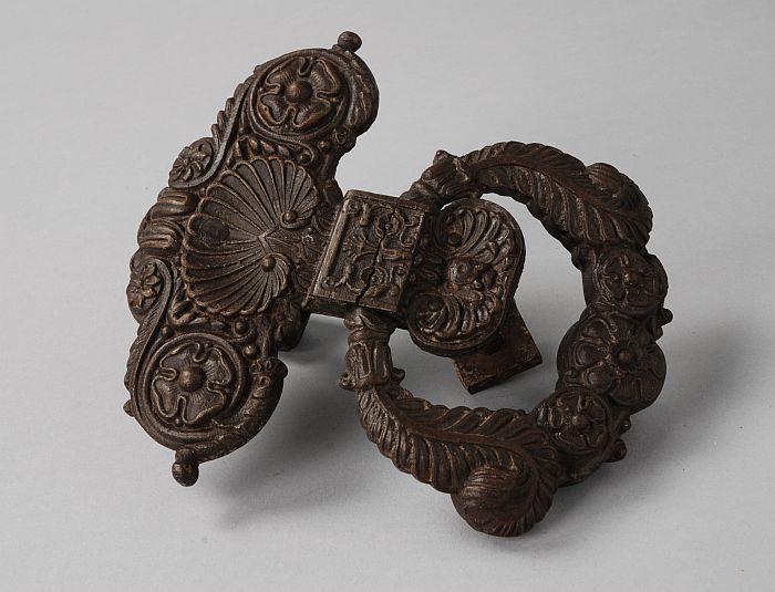 Gegoten metalen deurklopper met veel ornamentwerk