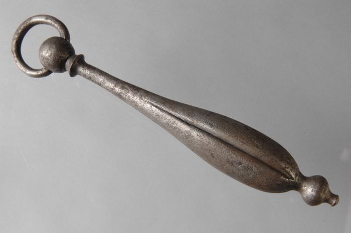 Gesmeed ijzeren beltrekker, druppelvormig met oog en...