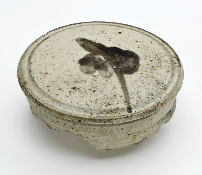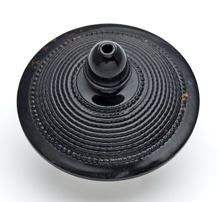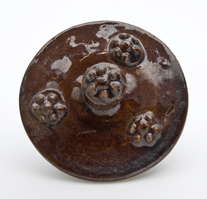 Aardewerk deksel met vier braamnoppen versierd