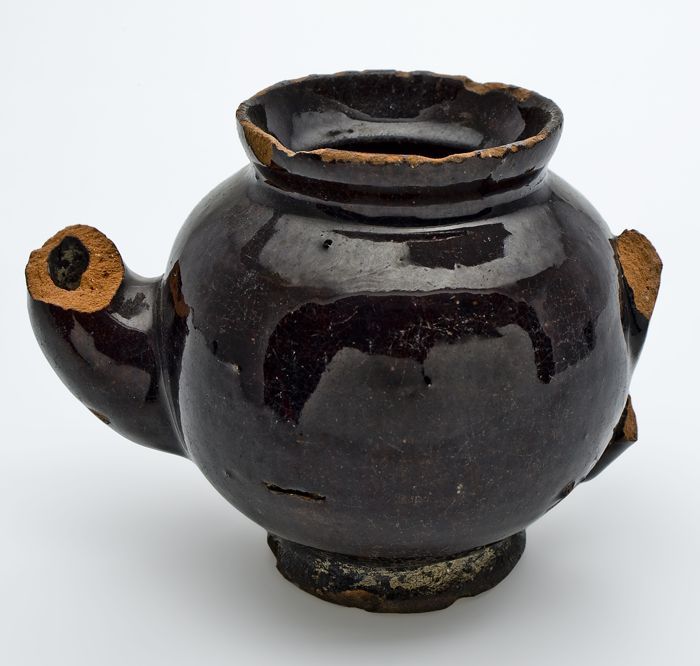 Kleine aardewerken kan, mangaan / bruin geglazuurd, ...