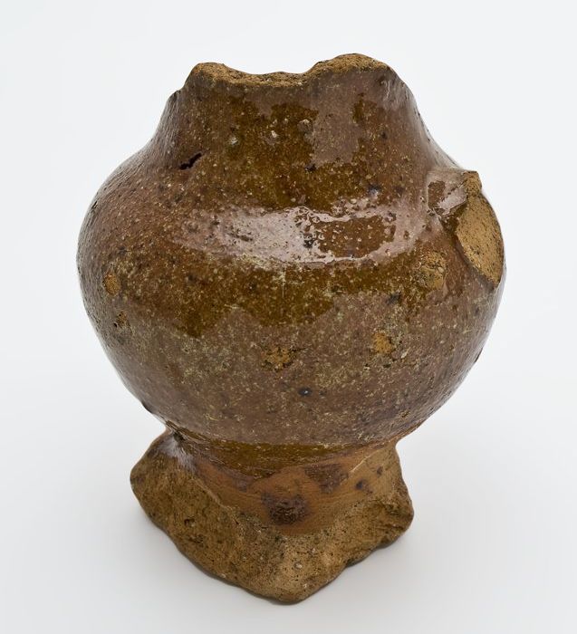 Fragment aardewerken fluit op standvoet