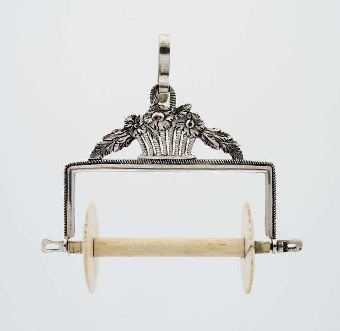 Zilveren kluwenhouder met ivoren klos