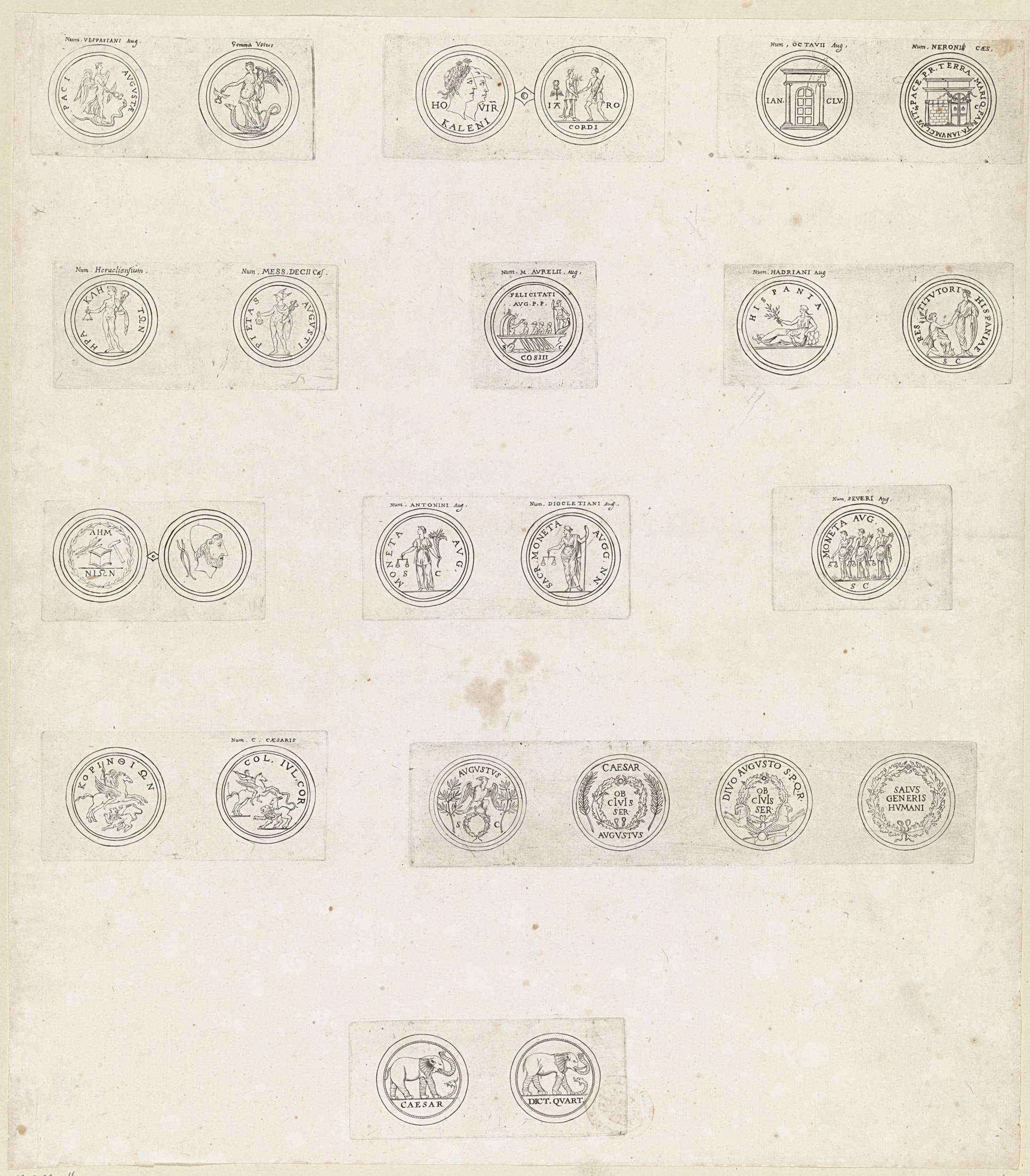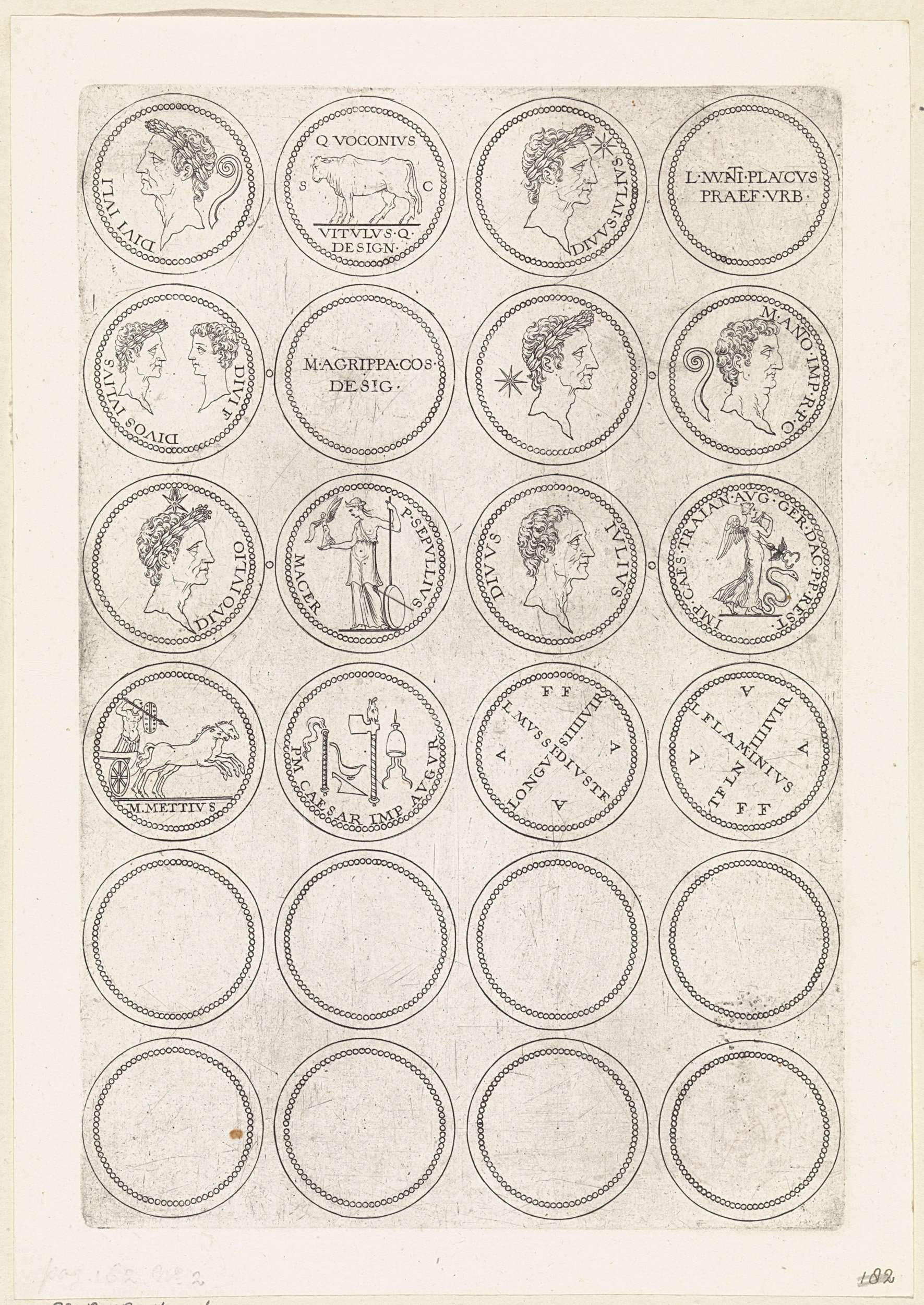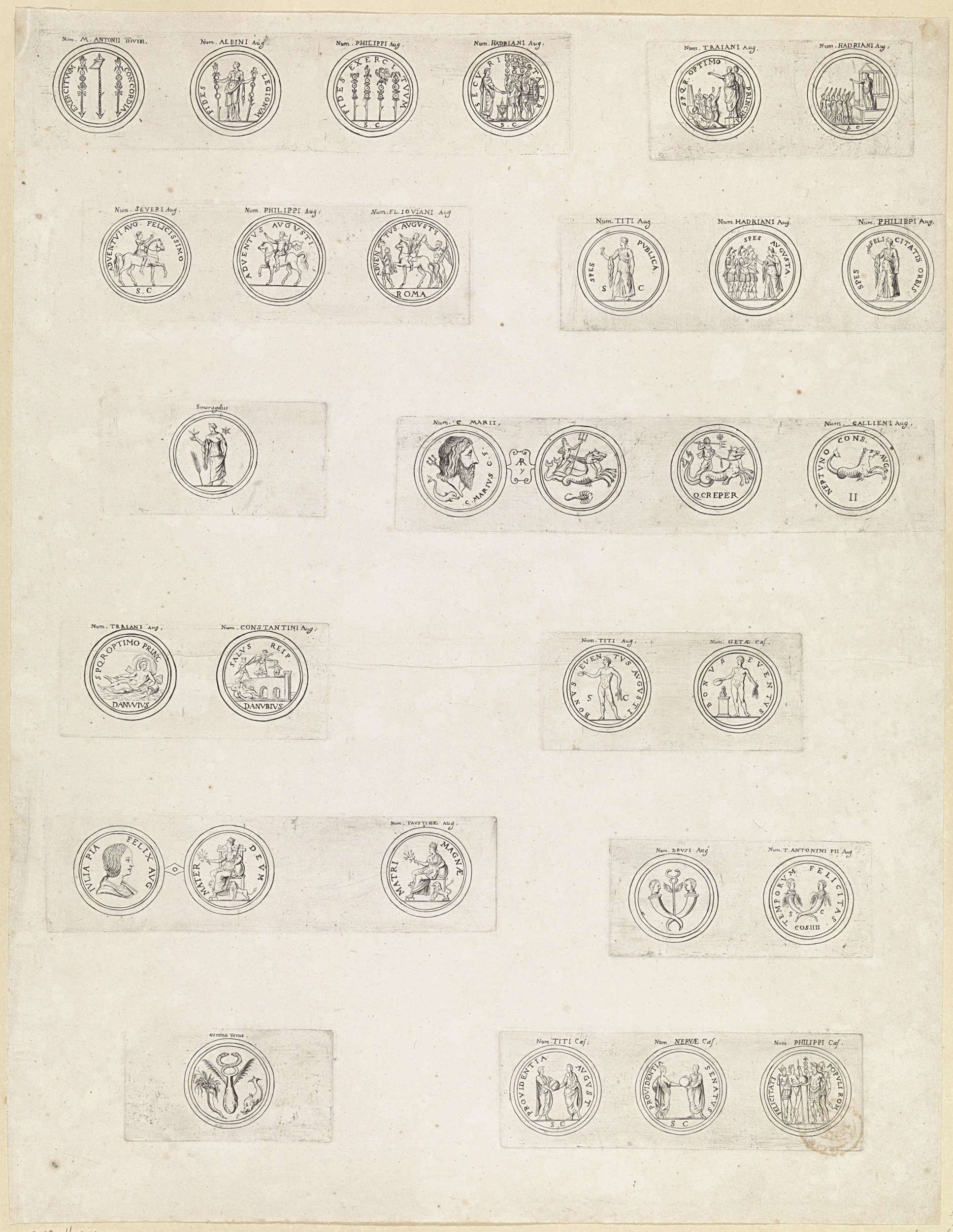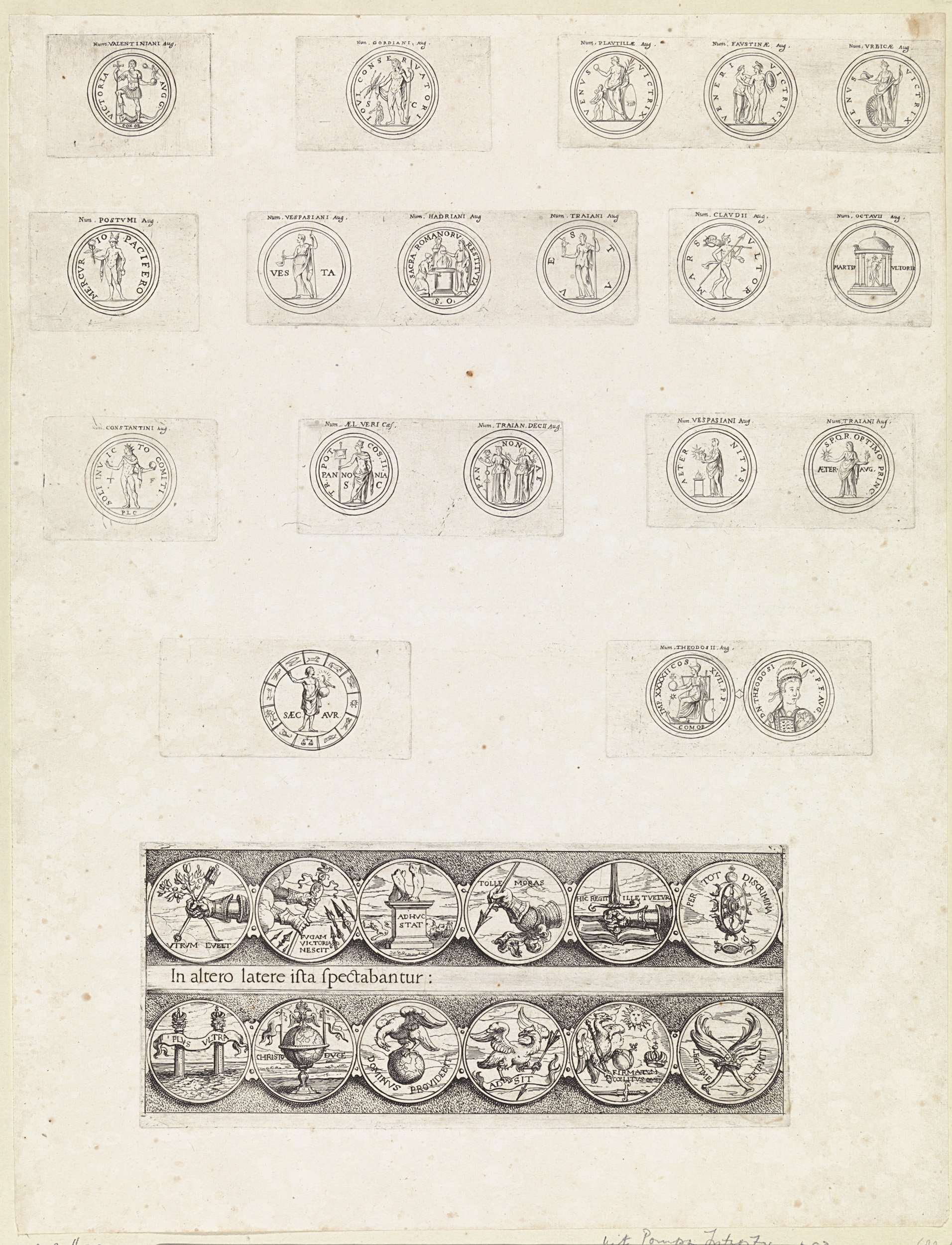 Dertig Romeinse munten met deviezen en emblemen van ...