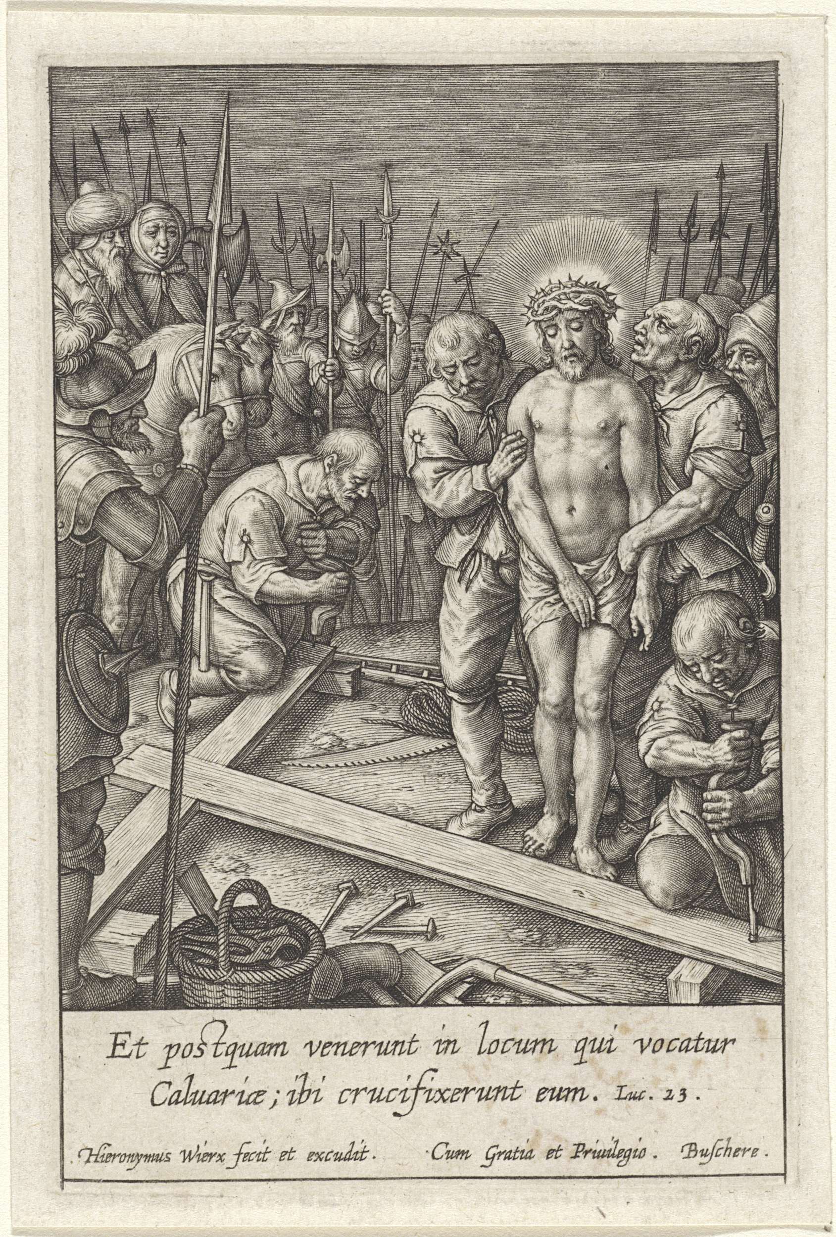 Christus wordt aan het kruis genageld