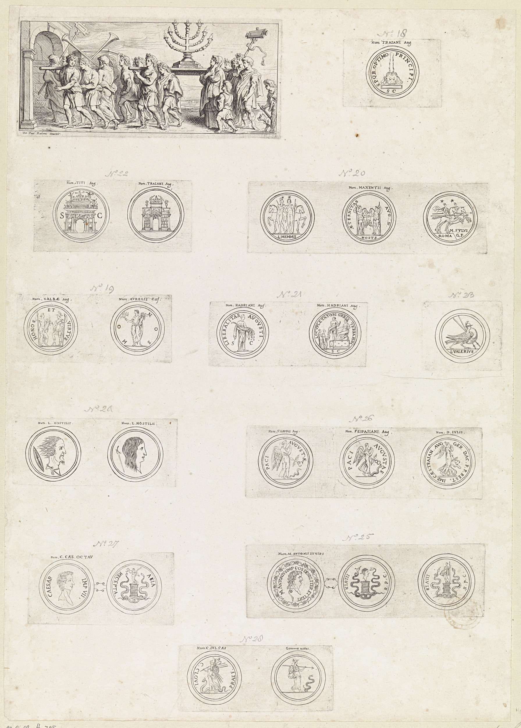 Blad met Triomfoptocht met de zevenarmige kandelaar ...
