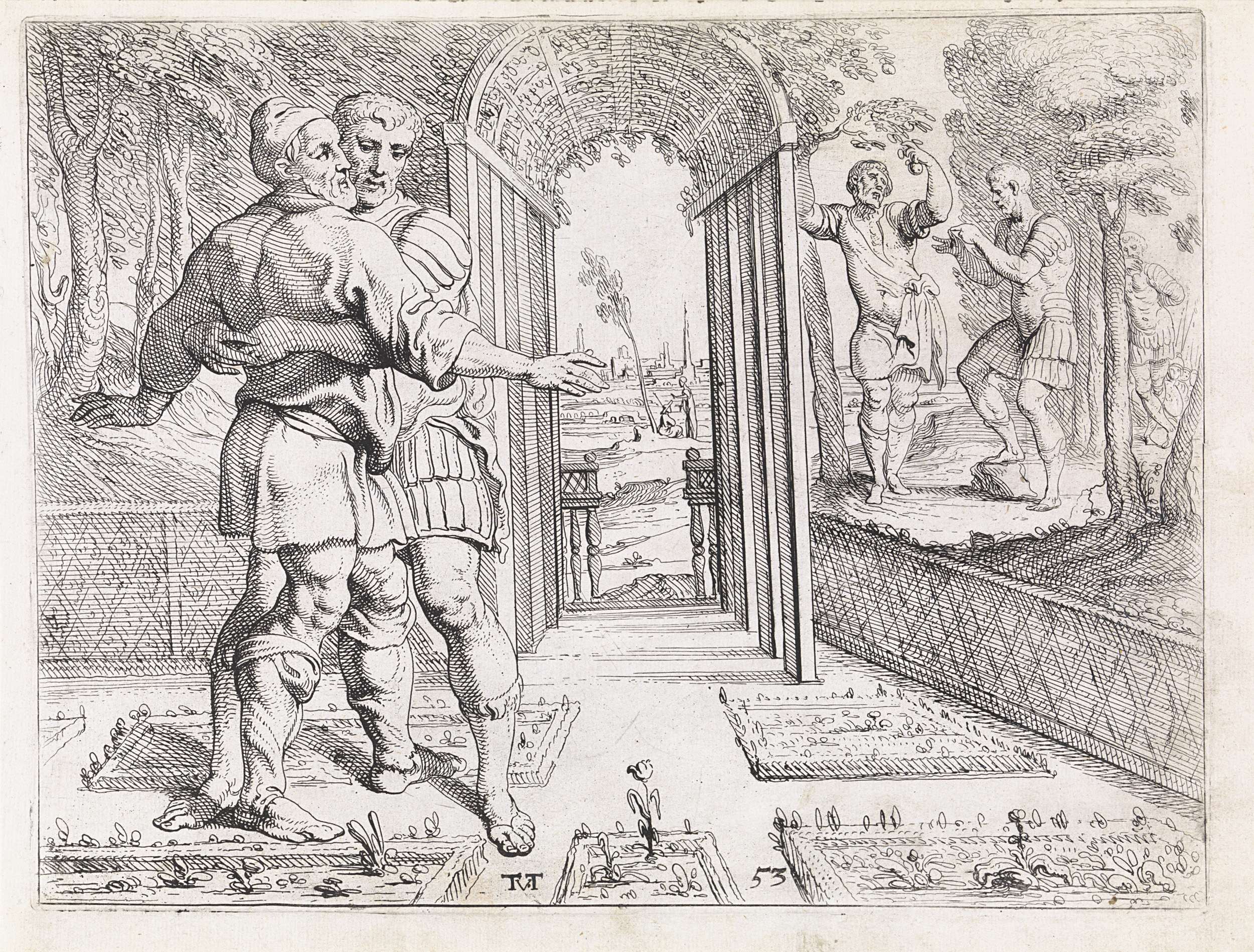 Odysseus en Telemachus onderweg naar Laertes