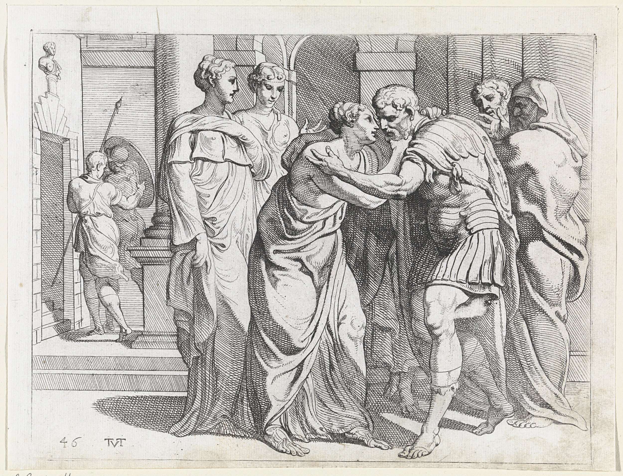 Odysseus omhelst Laërtes in zijn wijngaard