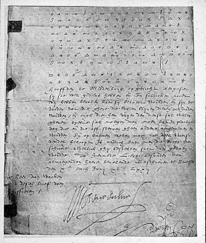 Gedeelte van een brief, gedeeltelijk in geheimschrif...