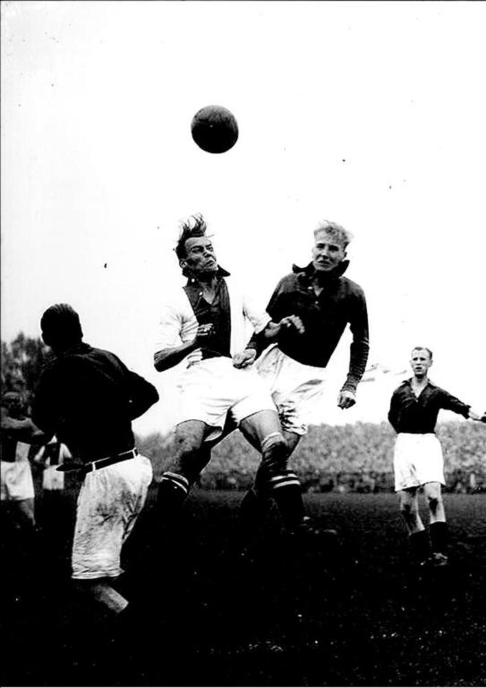 Foto van kopduel tijdens de wedstrijd Ajax-ADO 1941
