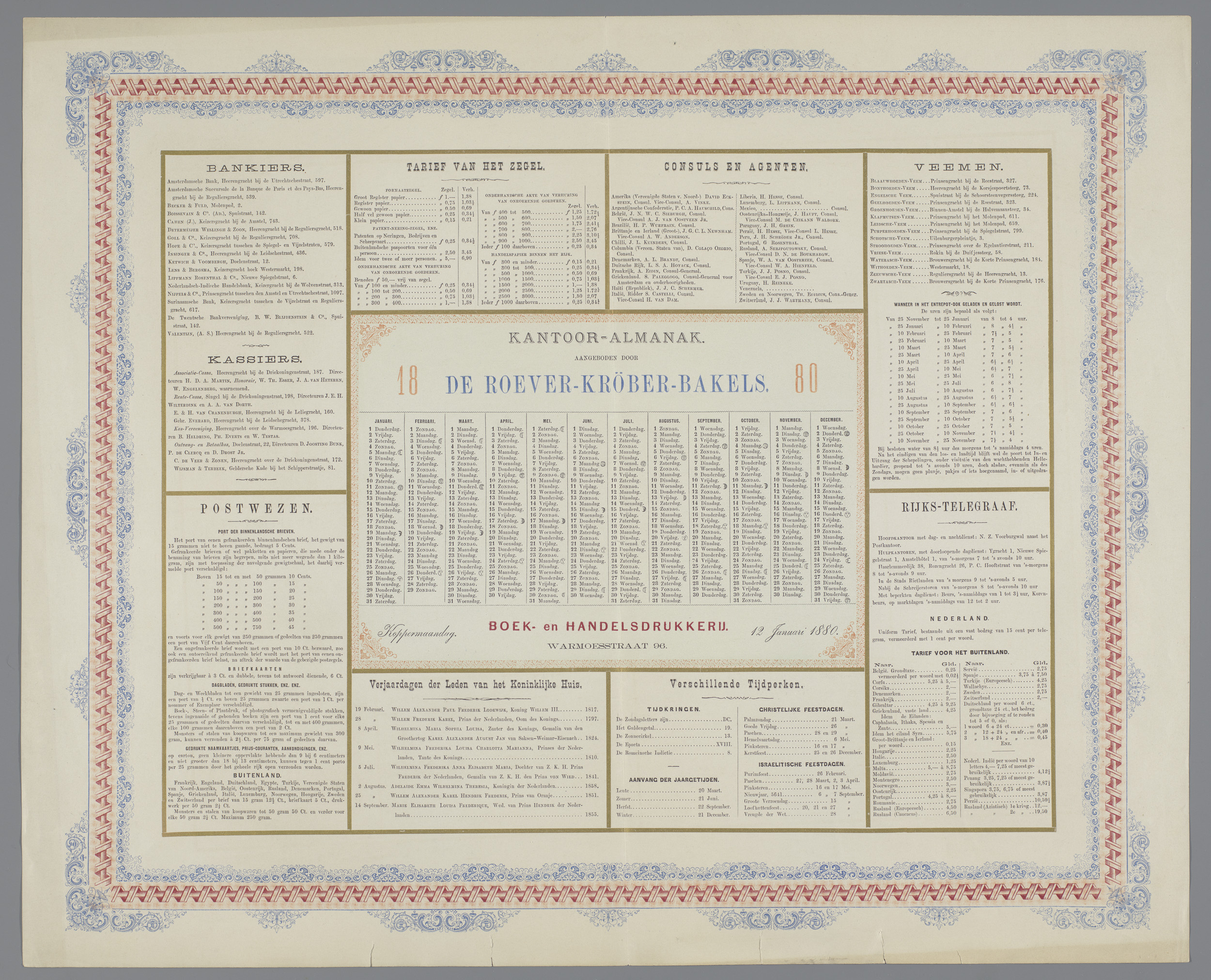 Kalender voor 1880 van drukkerij De Roever-Kröber-Ba...
