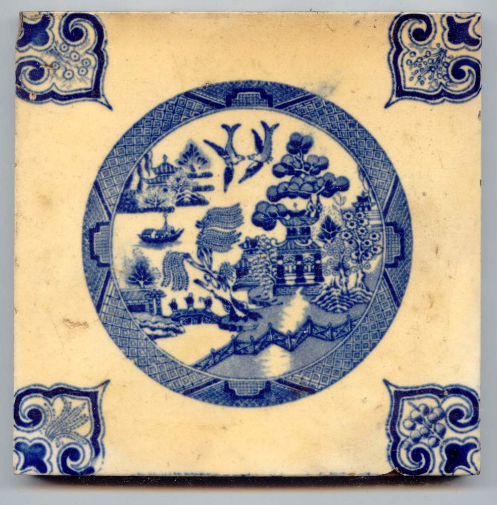 Tegel, voorstellende een Chinese tuin met hoekmotiev...