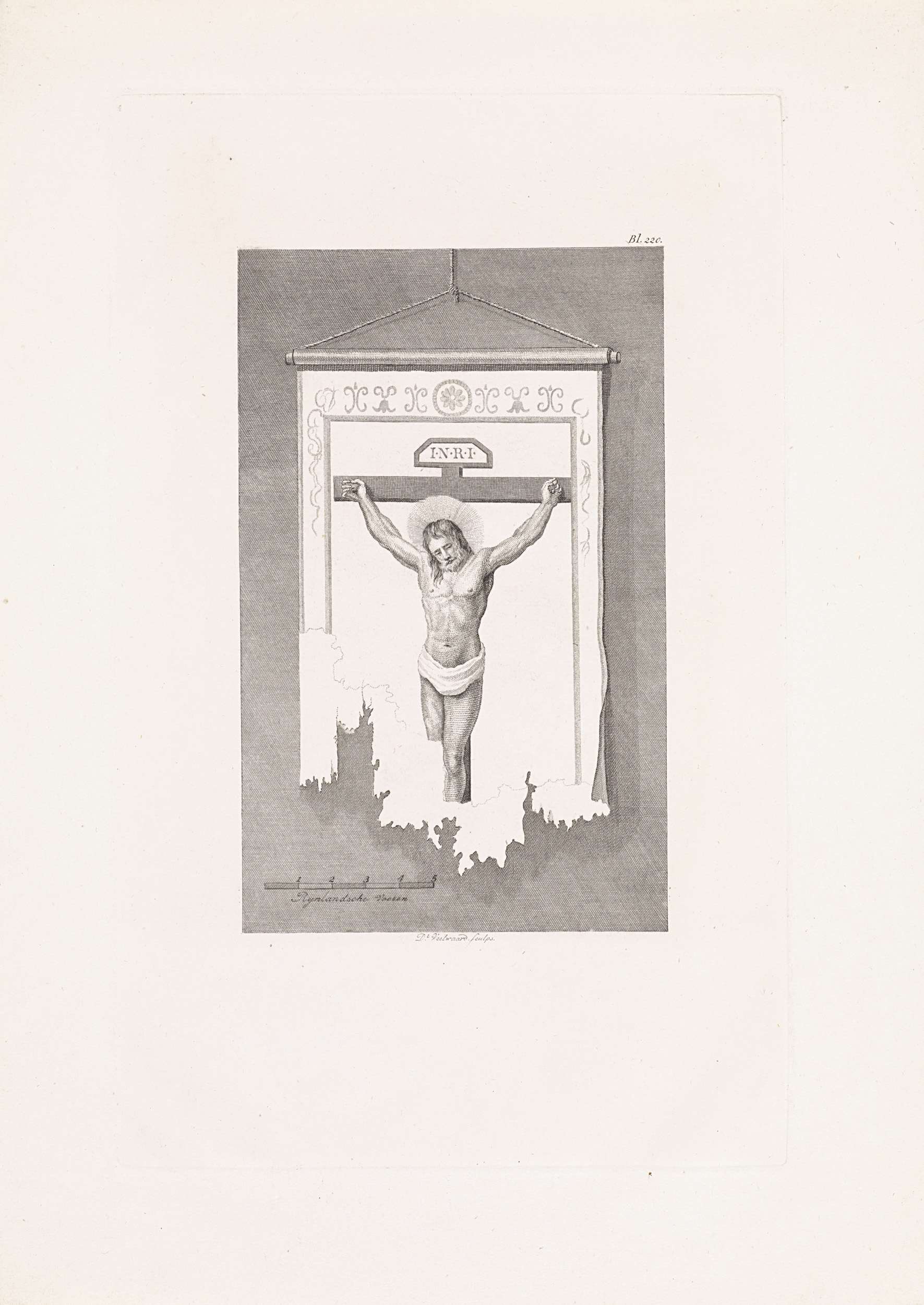 Deel van een wimpel met gekruisigde Christus