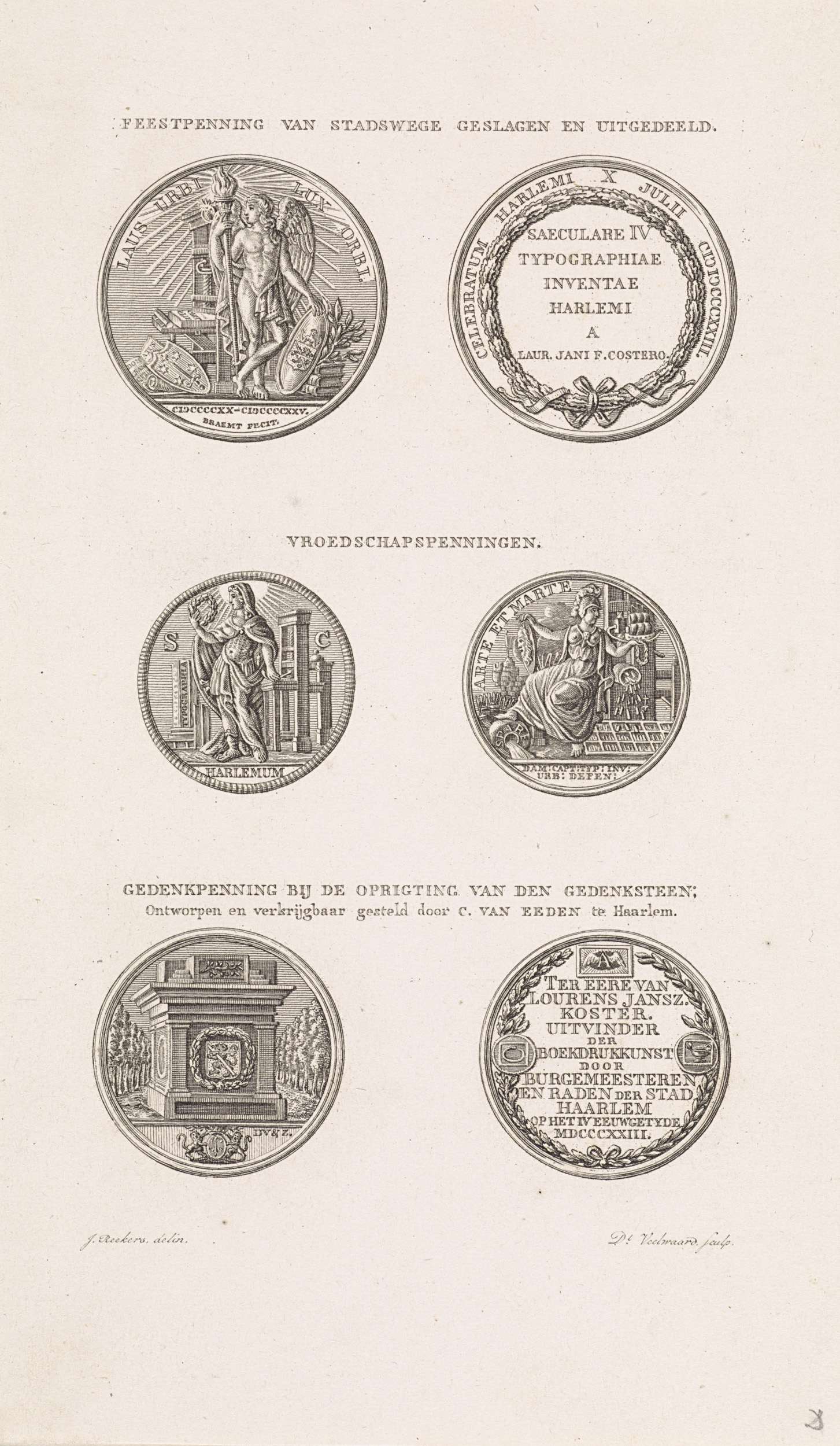 Vier penningen ter ere van Laurens Jansz. Coster