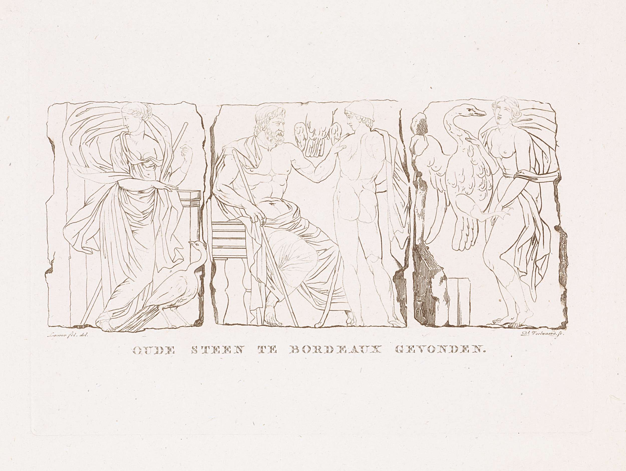 Putti elkaar omhelzend, met vrijheidshoed en schild ...