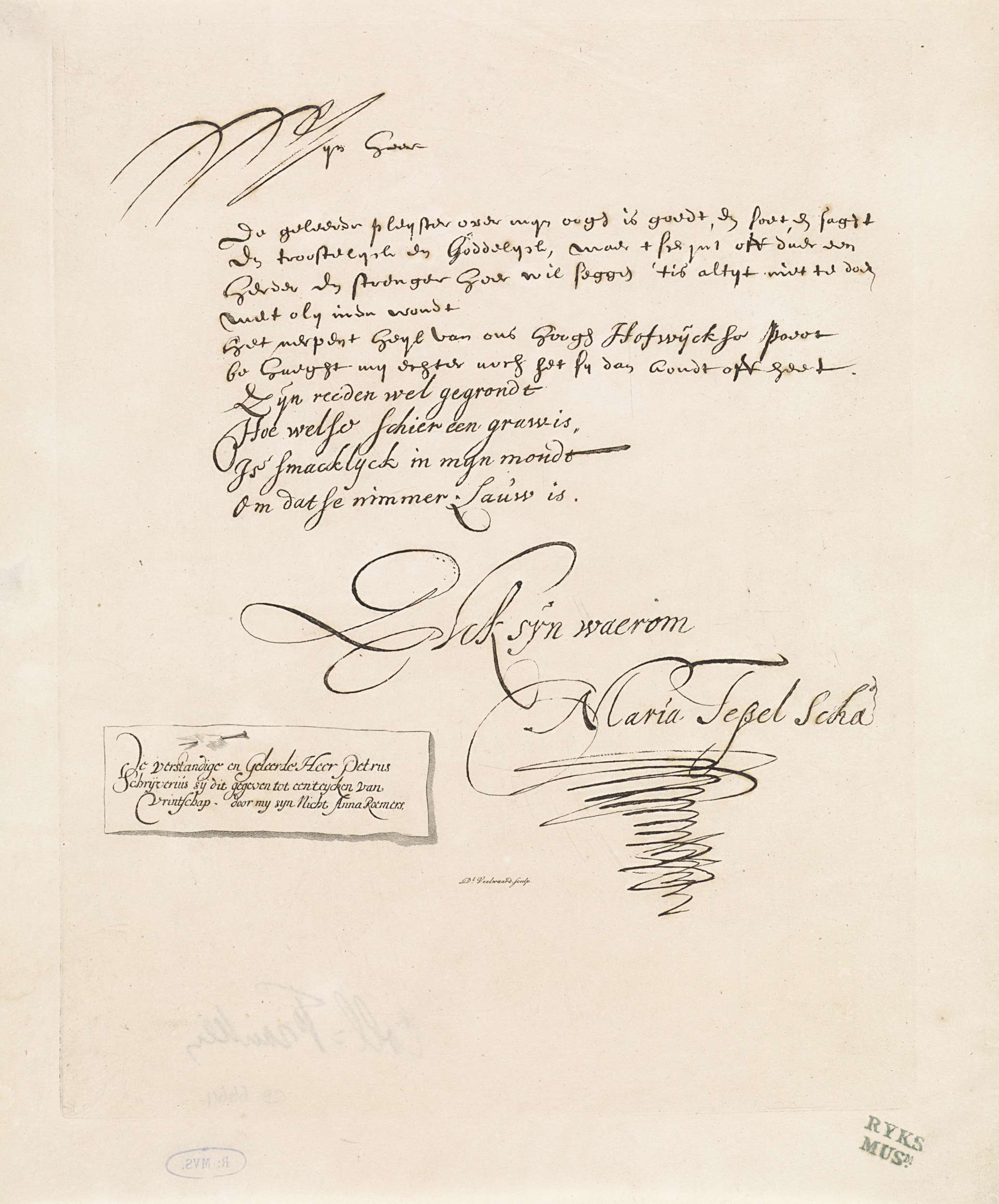 Brief van Maria Tesselschade Roemers Visscher