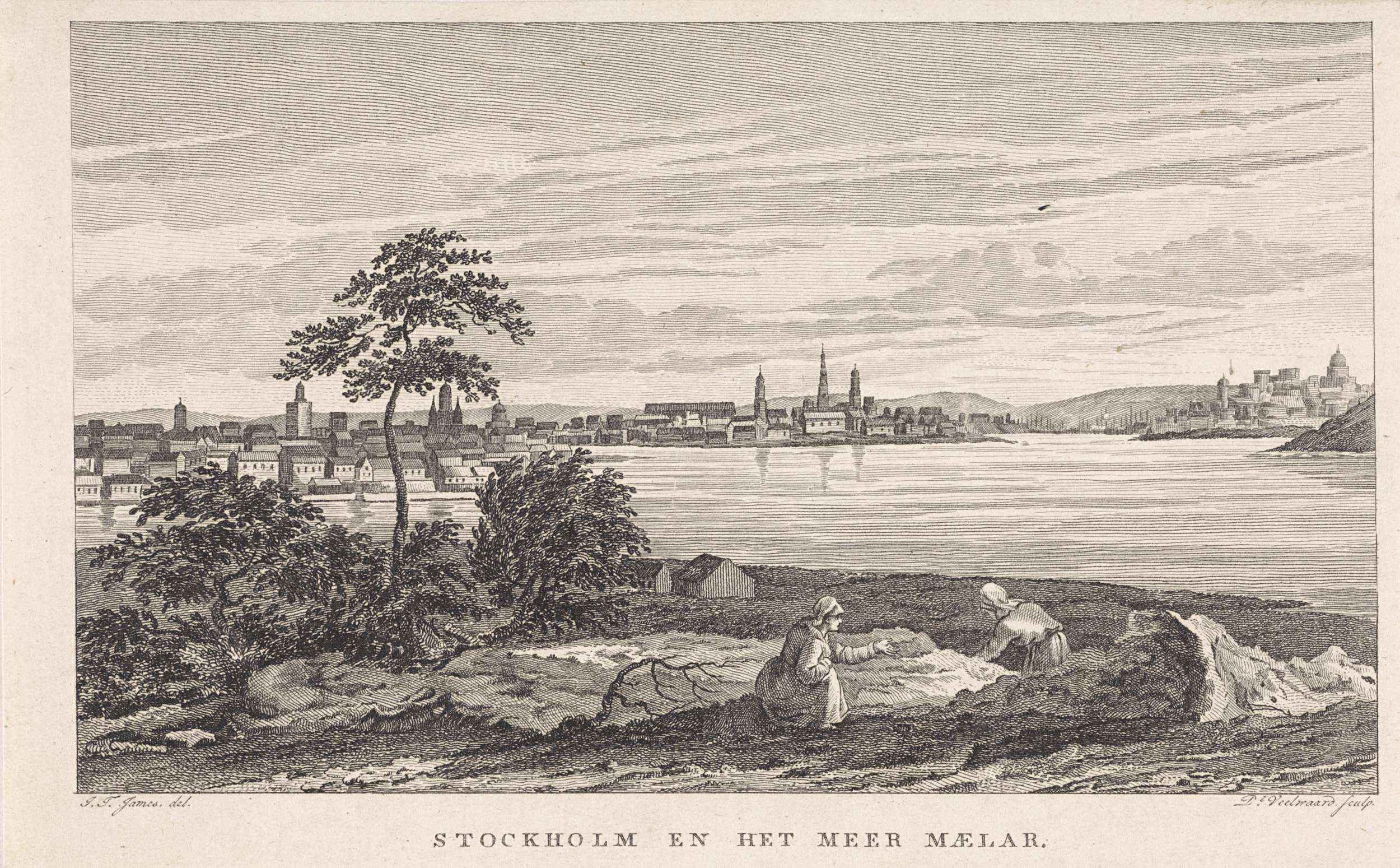 Gezicht op Stockholm en het meer Maelar