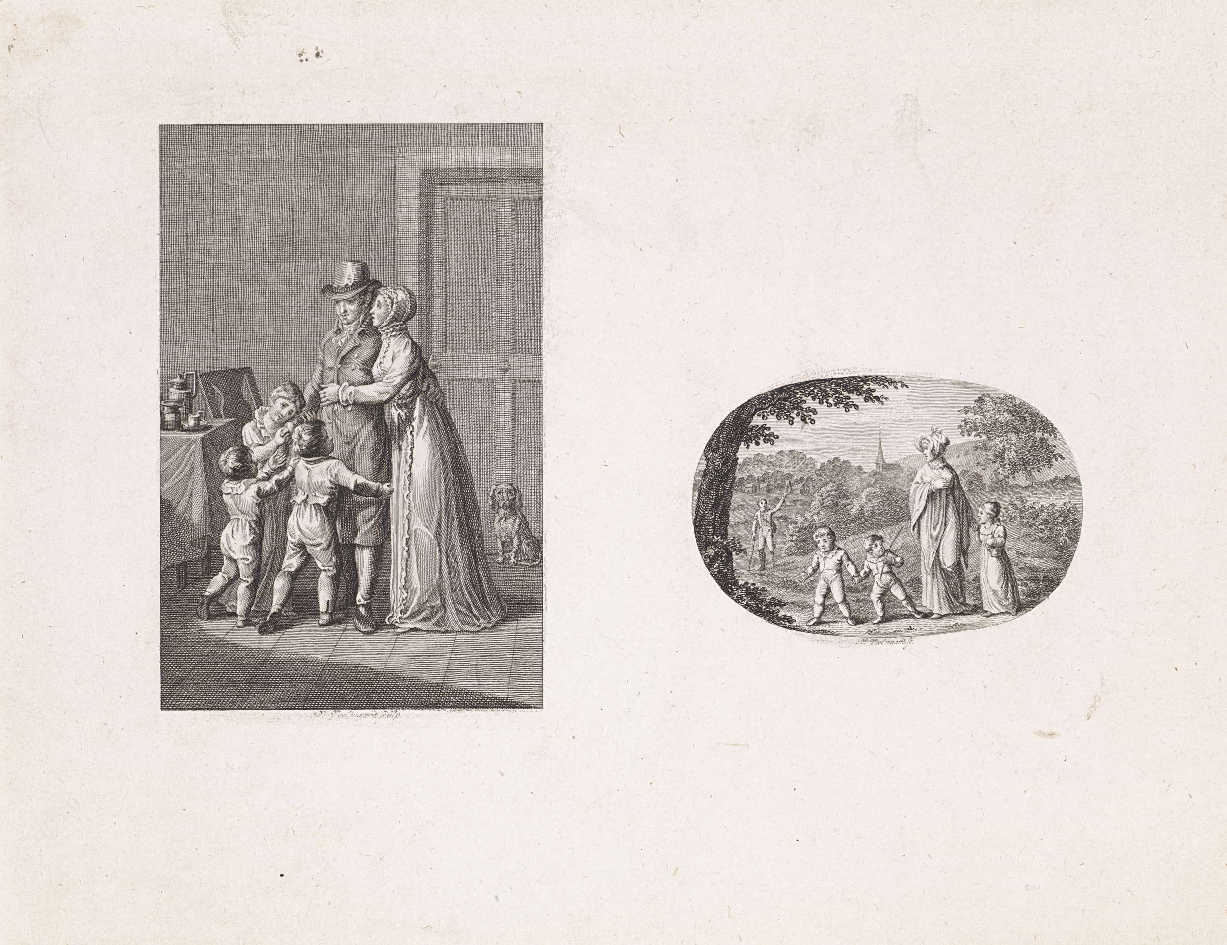 Twee voorstellingen: Moeder en kinderen nemen afsche...