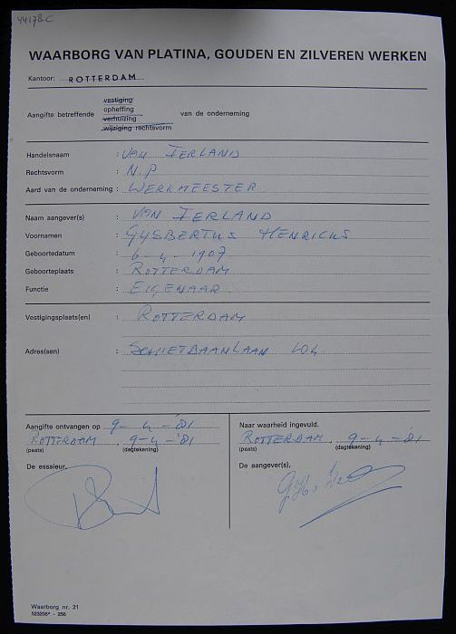 Aangifte van opheffing van de zaak van de edelsmid V...