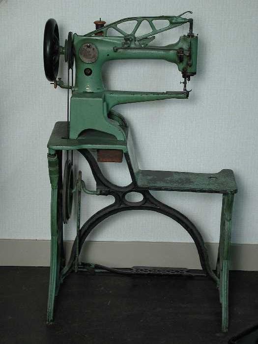 Groengeverfde metalen Singer-naaimachine op onderste...