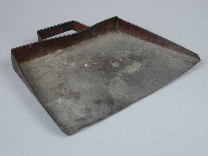 Rechthoekig metalen stofblik met handvat, gebruikt d...