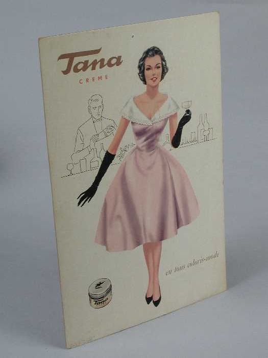 Kartonnen reclamebord van "Tana creme" met steun aan...